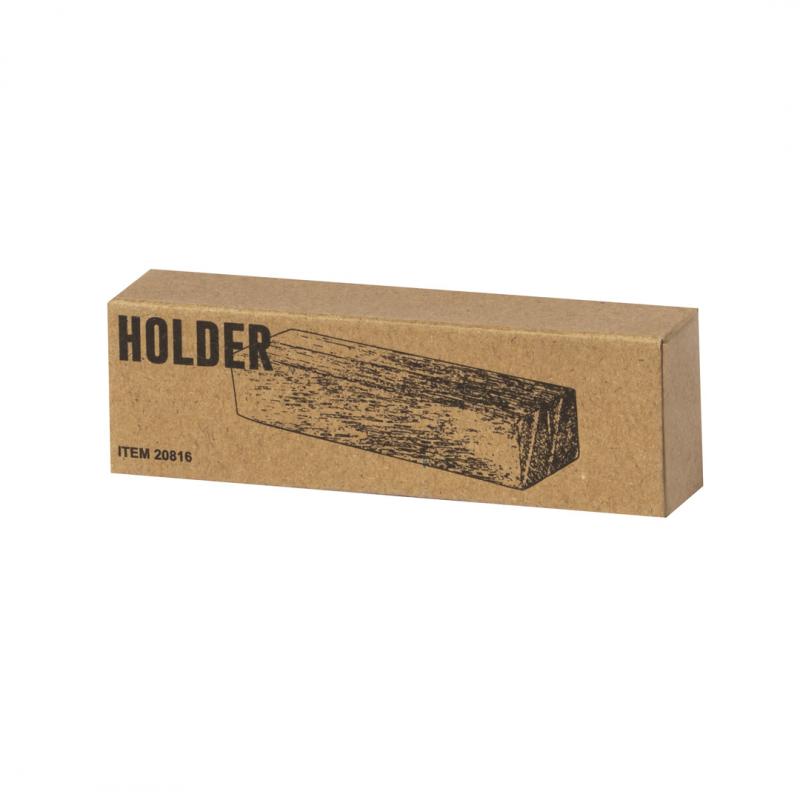 Base soporte fabricado en madera. Práctico pedestal cuadrado con ranura para coger documentos y exponerlos. Presentado individualmente en una caja diseño kraft.