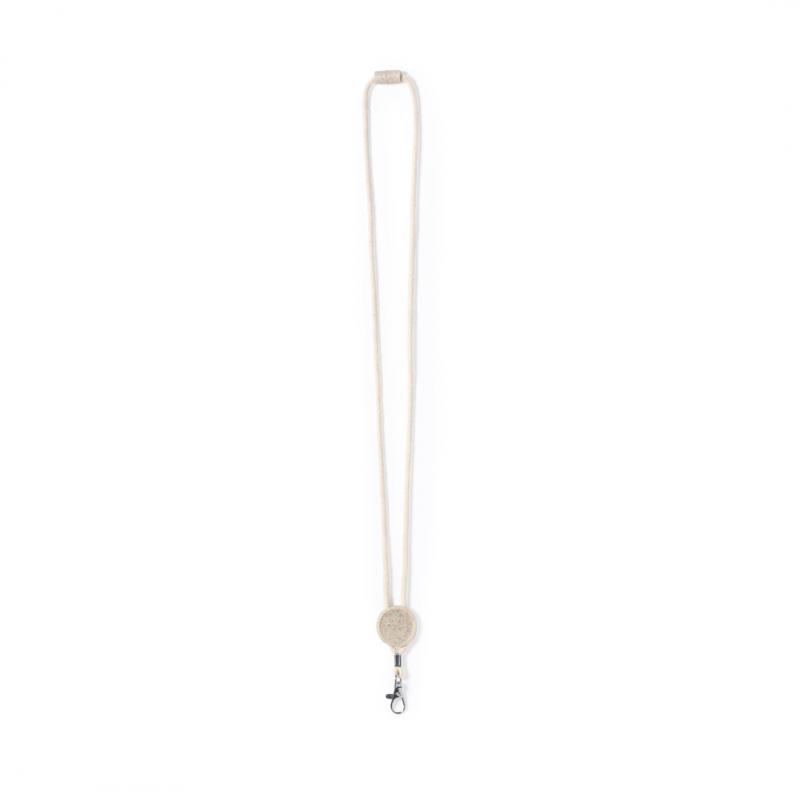 Lanyard de línea nature fabricado en resistente algodón 100%. Accesorio circular para personalización y cierre de seguridad en cuello fabricados en caña de trigo, con mosquetón metálico giratorio.La caña de trigo fomenta la utilización de materias primas naturales, reduciendo así las emisiones contaminantes.