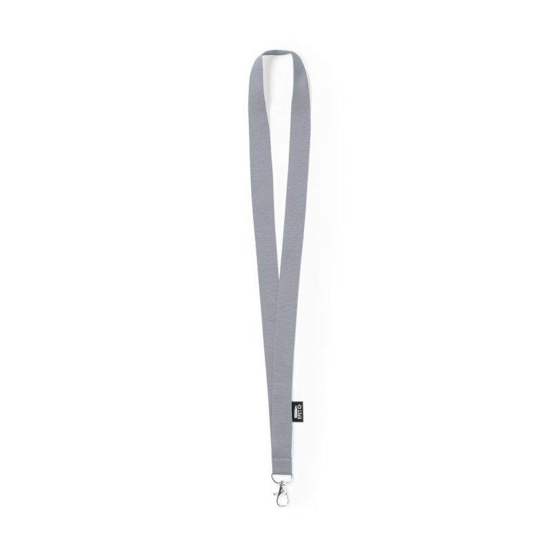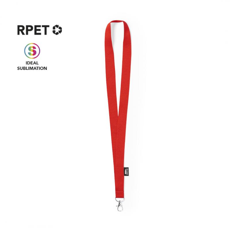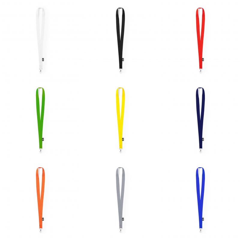Lanyard de línea nature fabricado en resistente poliéster 300D RPET, con gancho metálico giratorio. Etiqueta con distintivo RPET y disponible en extensa gama de colores, color blanco especial para sublimación.El material RPET se elabora a partir de plástico reciclado, para así fomentar la reutilización de residuos plásticos y ayudar a la sostenibilidad del planeta.