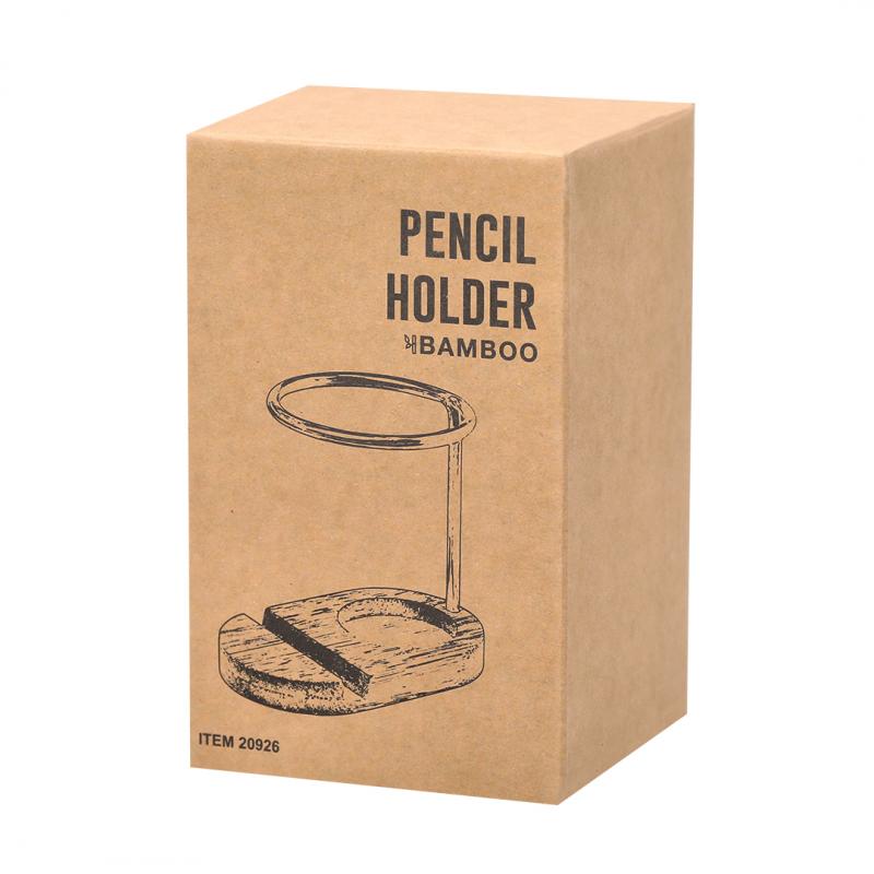 Lapicero con soporte fabricado en bambú y acero inox. De diseño minimalista, con base fabricada en bambú y estructura metálica. Presentado en una caja de diseño kraft. Materiales como el bambú fomentan la utilización de materias primas naturales, reduciendo las emisiones contaminantes. Proviene de una planta de gran resistencia y versatilidad, con crecimiento y regeneración rápidos, siendo una excelente alternativa al uso de madera tradicional.