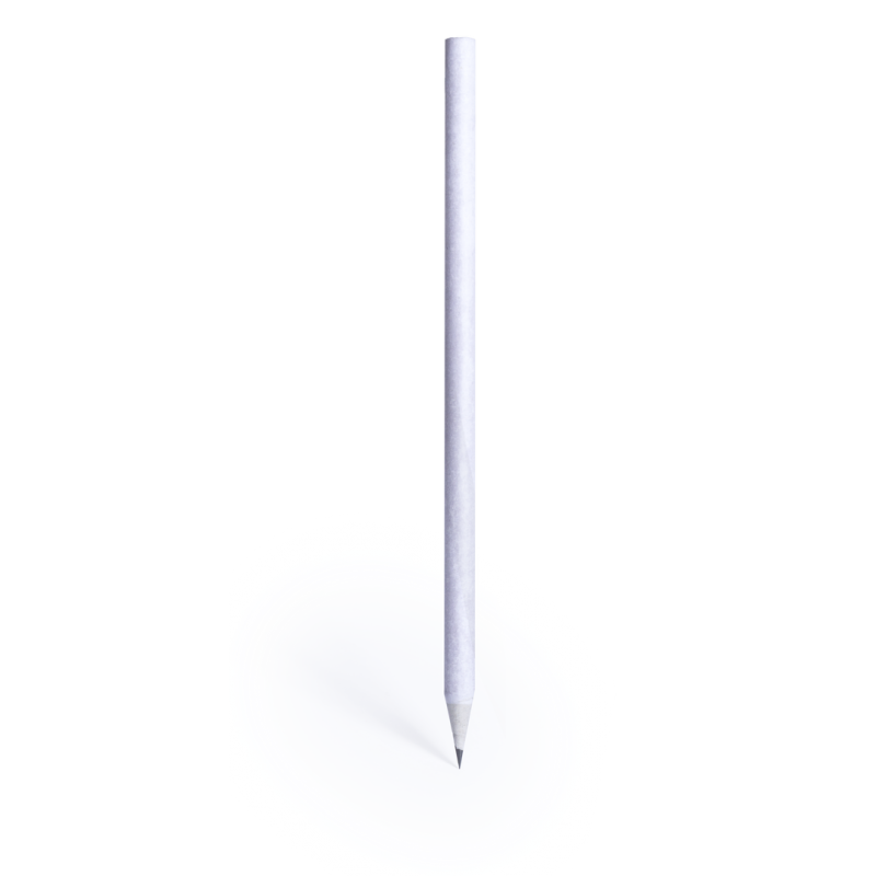 Lápiz de papel de periódico reciclado y resistente cuerpo en color natural. Con mina negra y punta afilada.