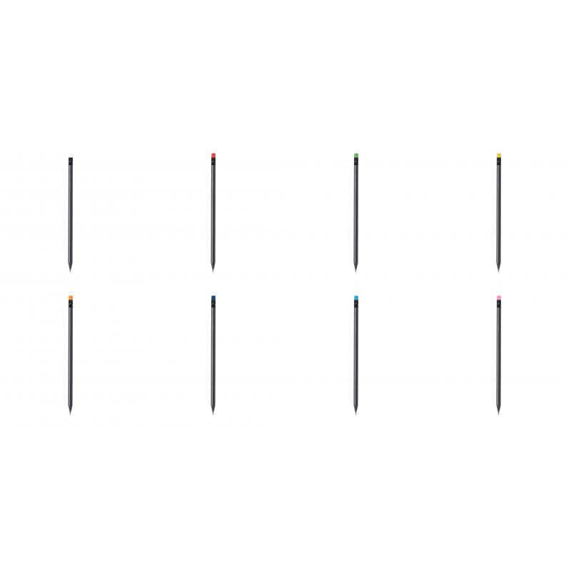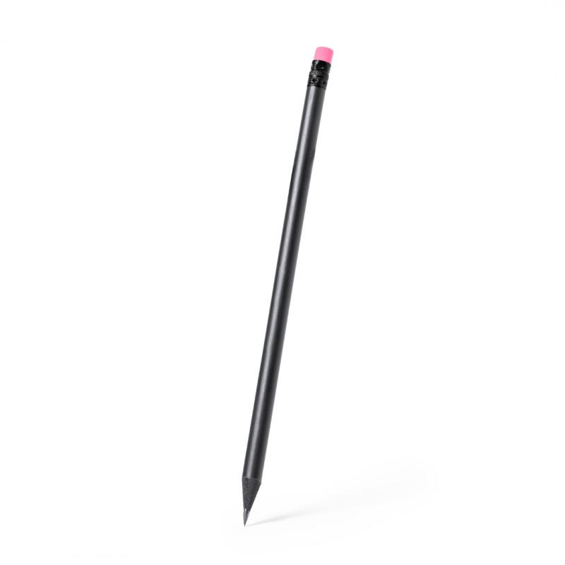 Elegante lápiz de color negro fabricado en madera natural, con práctica goma y disponible en diversos colores. Con mina negra y punta afilada.