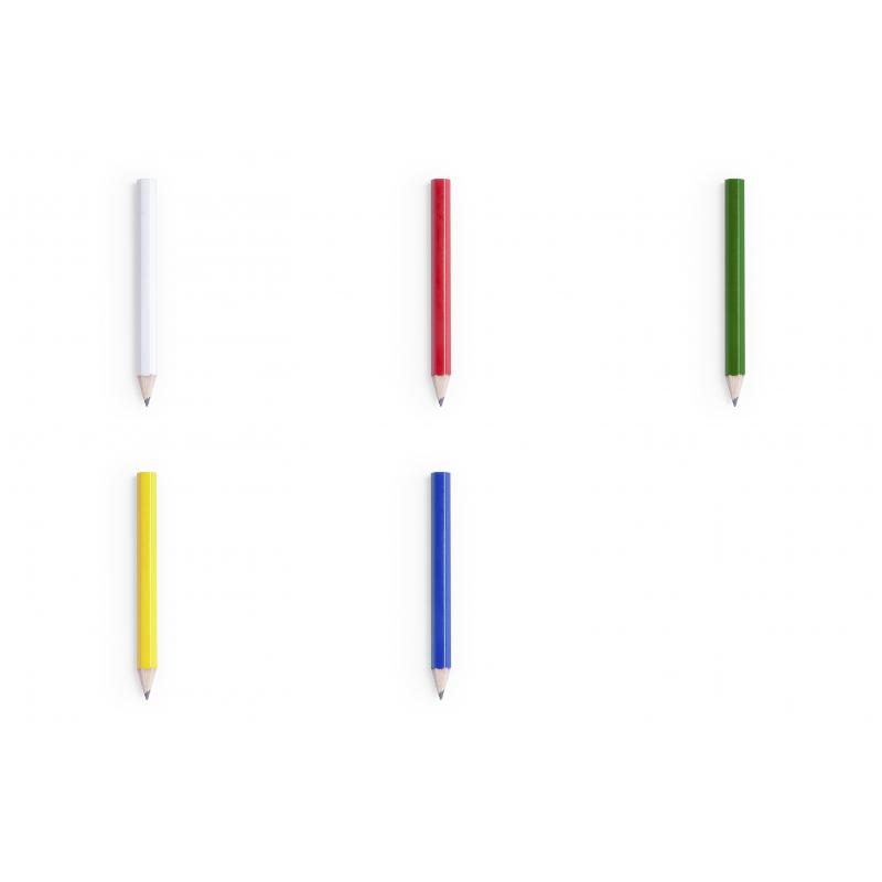 Minilápiz de madera de acabado brillo. Con cuerpo hexagonal y disponible en variada gama de colores. Mina negra y punta afilada.