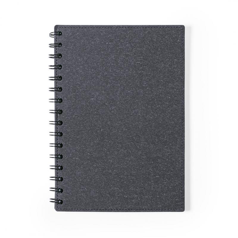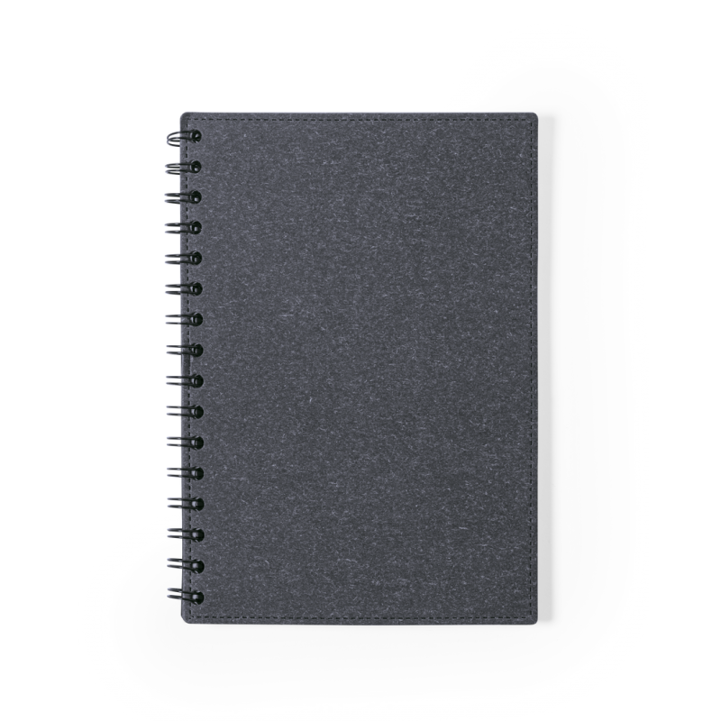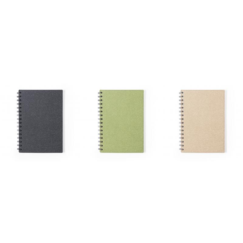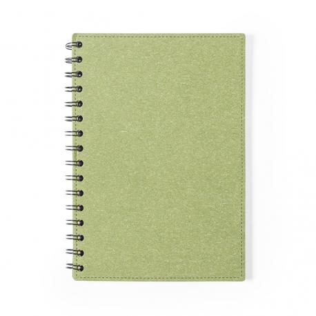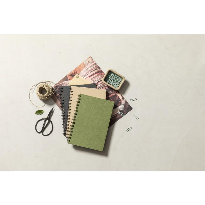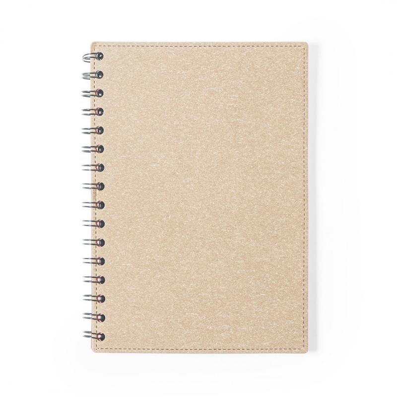 Libreta de anillas A5 de línea nature, con tapas duras en resistente cartón reciclado. 80 hojas con disposición a una raya, de acabado kraft y distintivo reciclado.