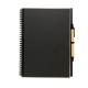 Libreta con cubierta negra o marrón natural con 70 páginas de papel reciclado y un bolígrafo reciclado biodegradable de tinta azul.