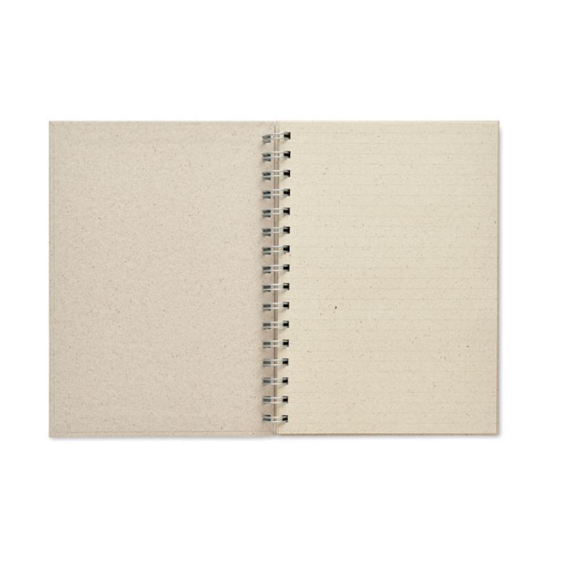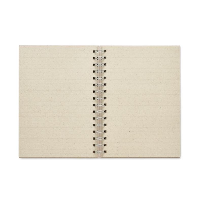 Libreta de anillas A5 con tapa de cartón de 80 hojas rayadas de papel hecho de hierba (40%). Fabricado en la UE.