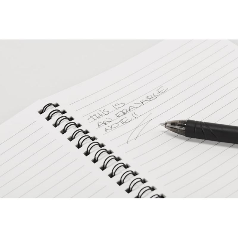 Libreta reutilizable A5 con tapa de PP. 18 hojas rayadas. Compatible con cualquier aplicación para escanear documentos. Incluye bolígrafo borrable con un paño de limpieza.