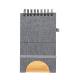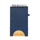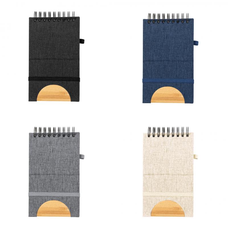 Libreta de anillas con soporte elaborado en RPET 300D y bambú. Sus tapas rígidas destacan por un versátil soporte integrado para smartphone, fabricado en bambú. Además, cuenta con elástico de cierre y soporte para bolígrafo a juego. Contiene 80 hojas interiores lisas y está disponible en una variada gama de colores. Con logotipo RPET en contraportada y presentada en bolsa individual reciclada.El material RPET se elabora a partir de plástico reciclado, para así fomentar la reutilización de residuos plásticos y ayudar a la sostenibilidad del planeta.