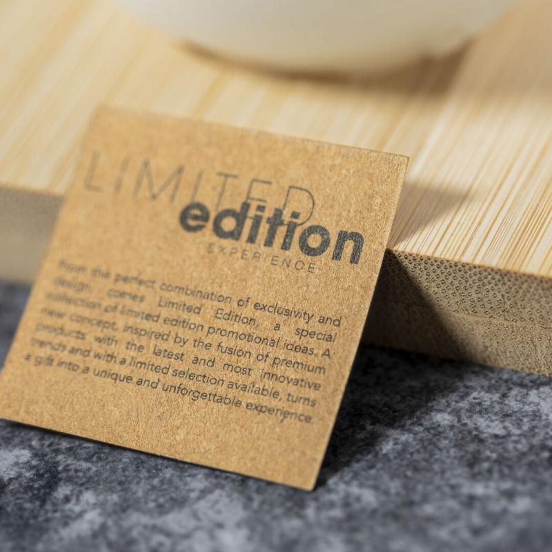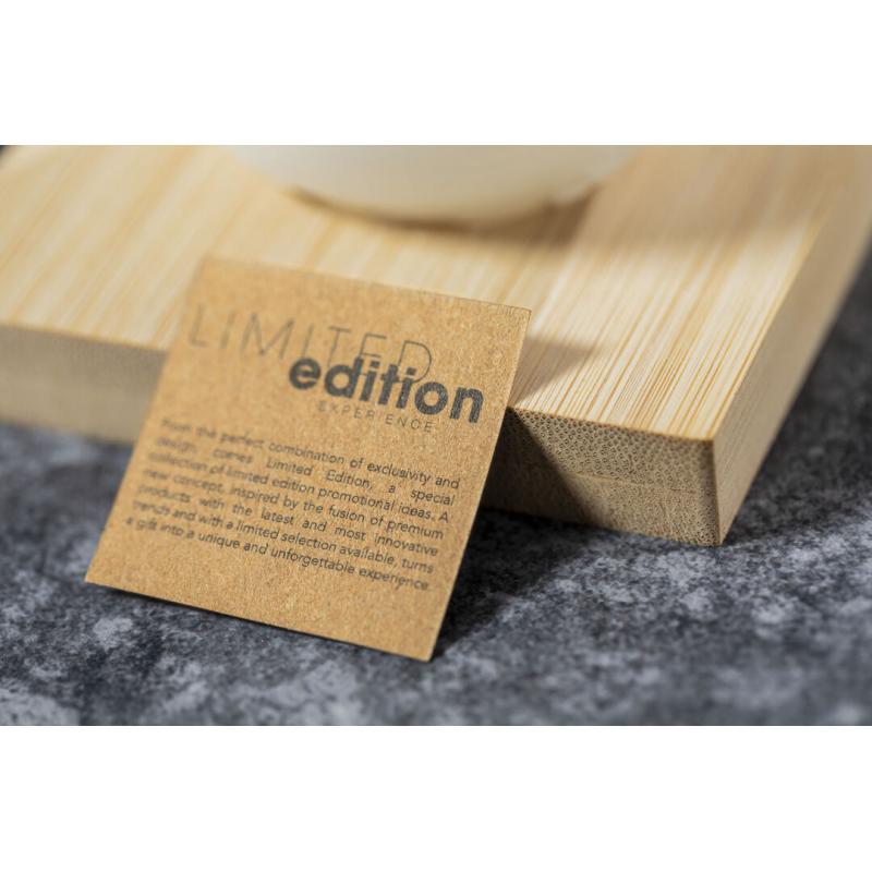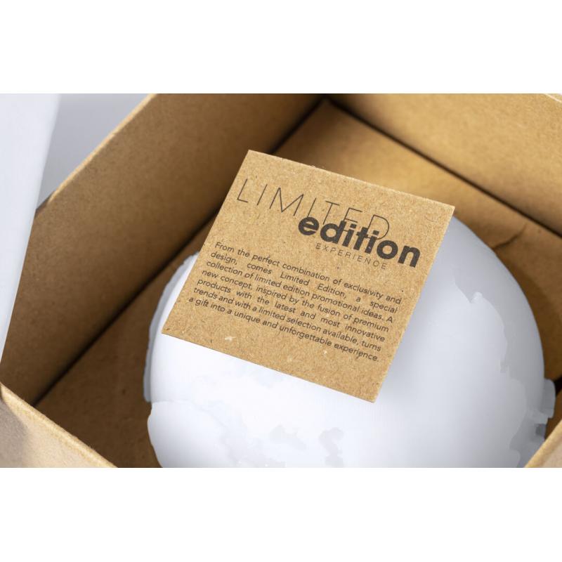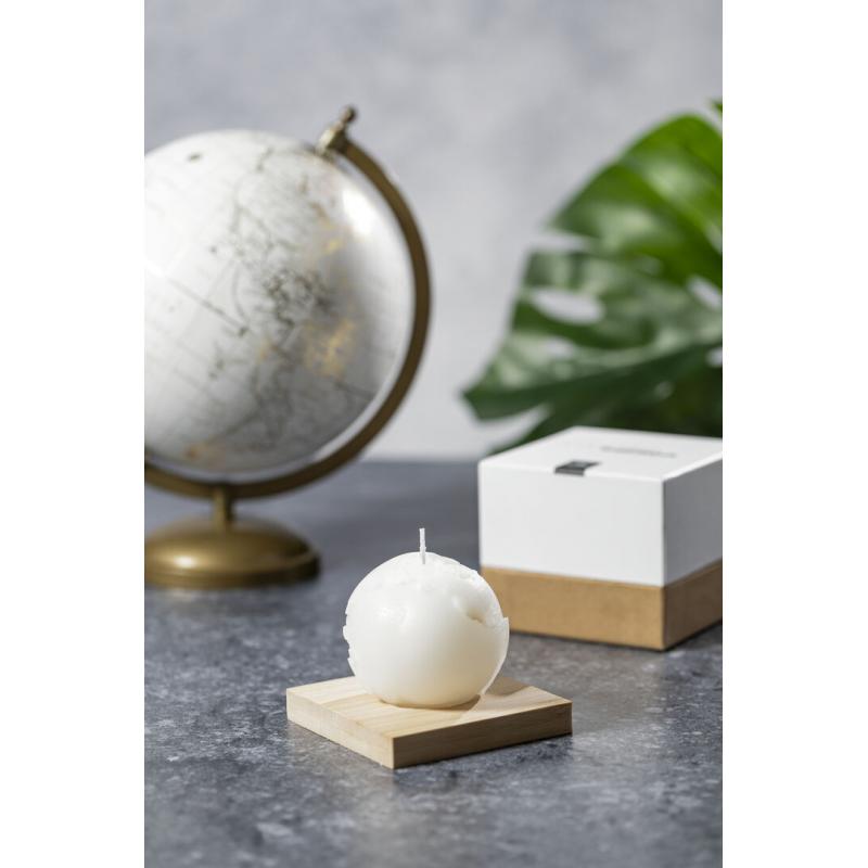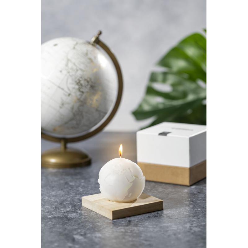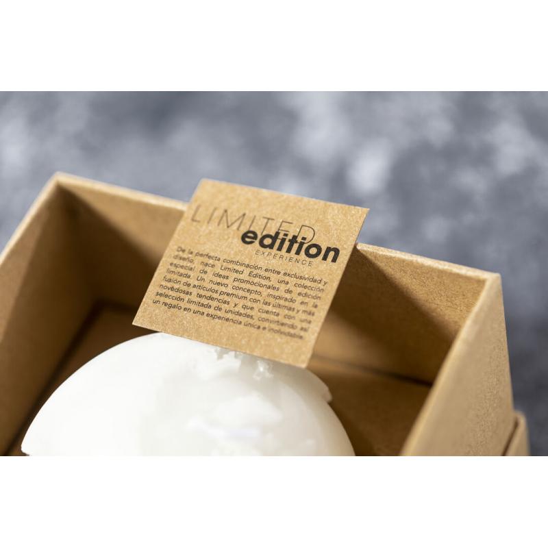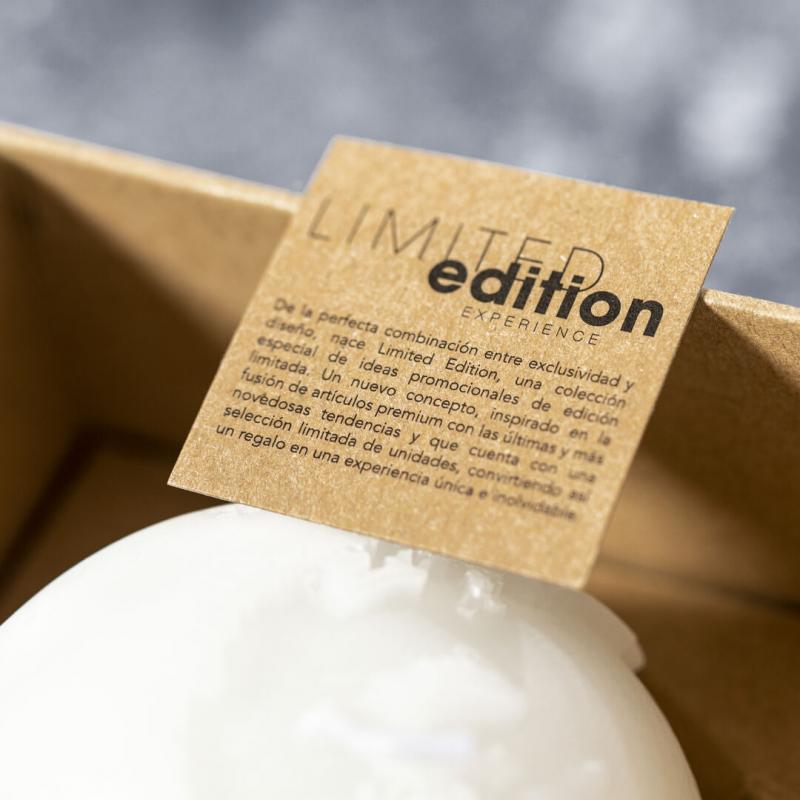 Vela aromática Limited Edition. Envolverse en la sensación de encedender una vela y trasladarse a través de su aroma a vainilla y diseño de bola del mundo. Un regalo ideal para crear ambientes de calma, despertar infinidad de sentimientos y sensaciones o formar parte de la decoración. Incluye base de soporte en bambú natural. De la perfecta combinación entre exclusividad y diseño, nace Limited Edition, una colección especial de ideas promocionales de edidición limitada. Un nuevo concepto, inspirado en la fusión de artículos premium con las últimas y más novedosas tendencias y que cuenta con una seleción limitada de unidades, convirtiendo así un regalo en una experiencia única e inolvidable. Exclusivo estuche de presentación Limited Edition,’, con diseño protegido por derechos de propiedad industrial. Incluida tarjeta con descripción de Limited Edition en cartón reciclado.