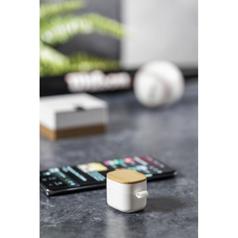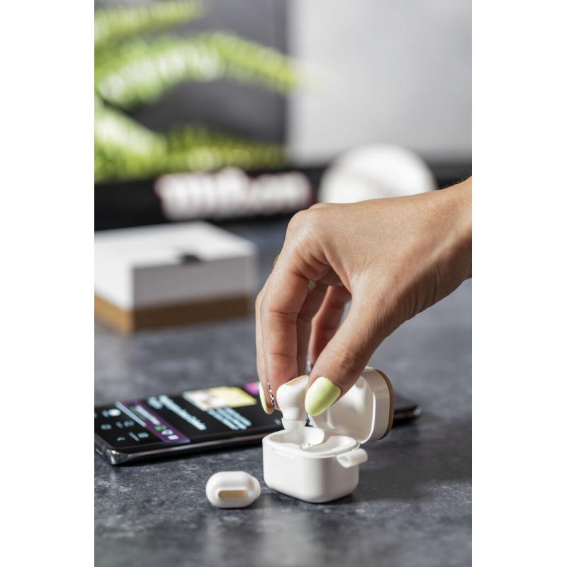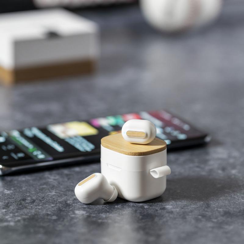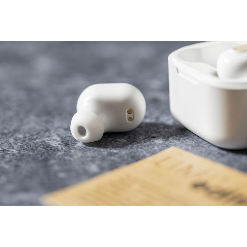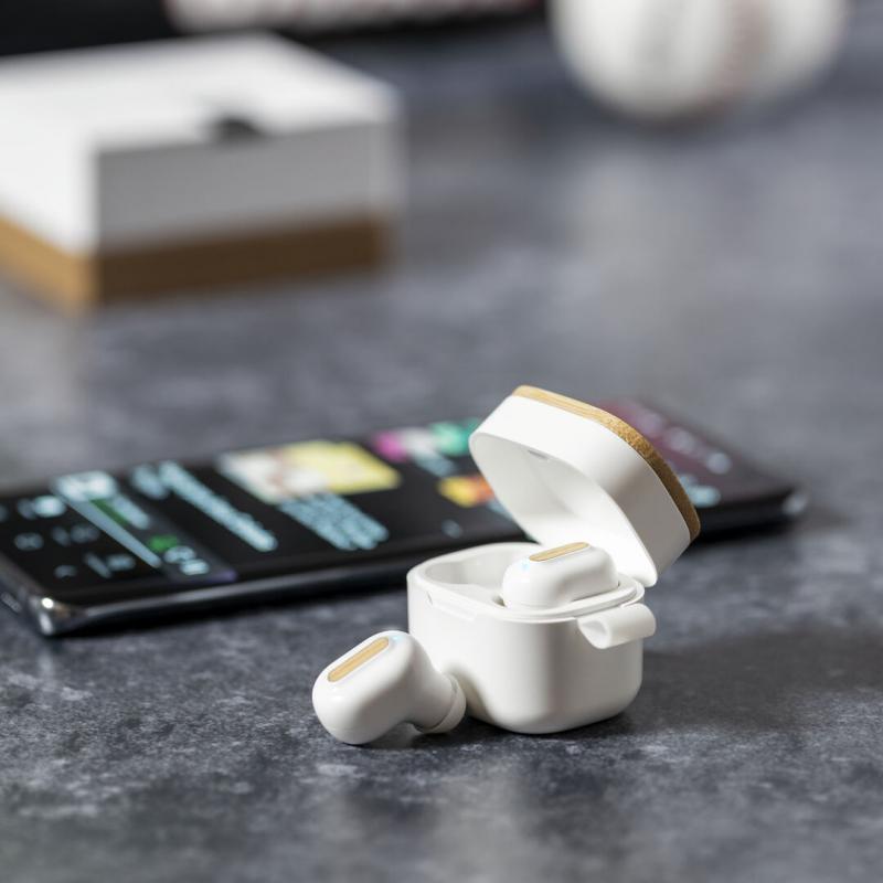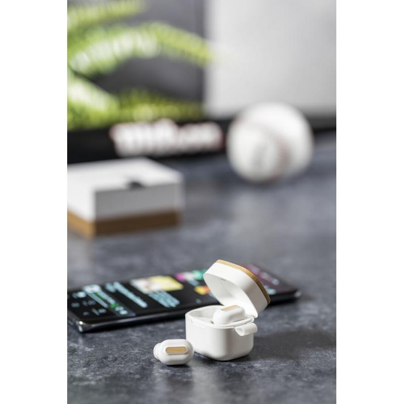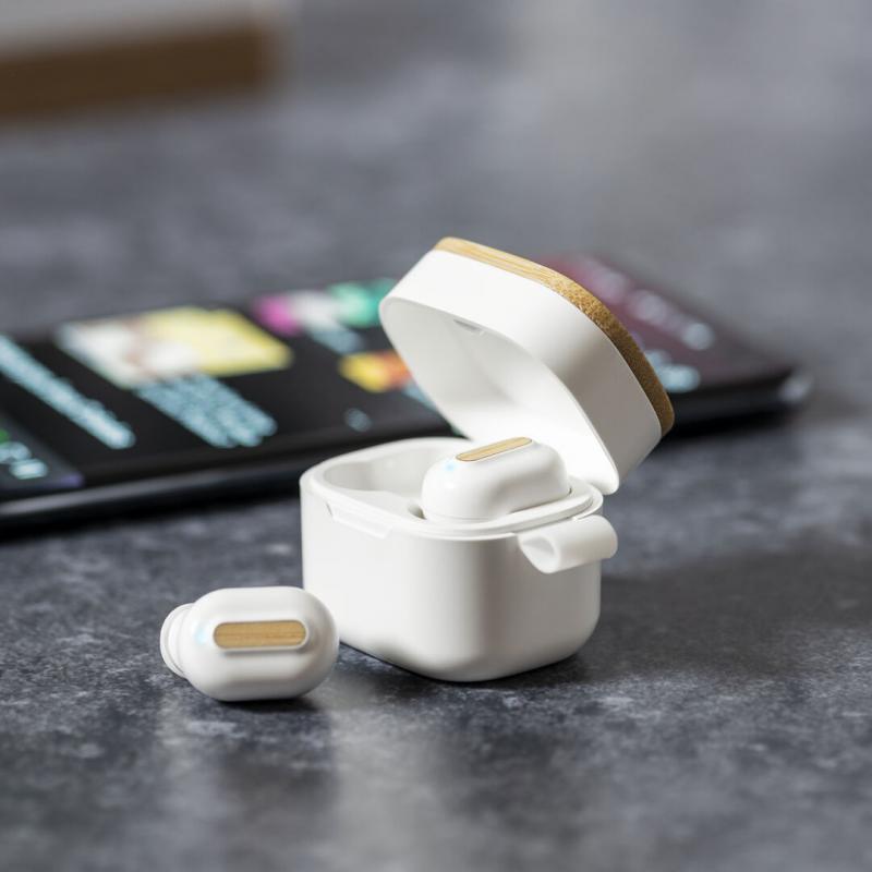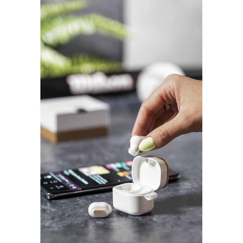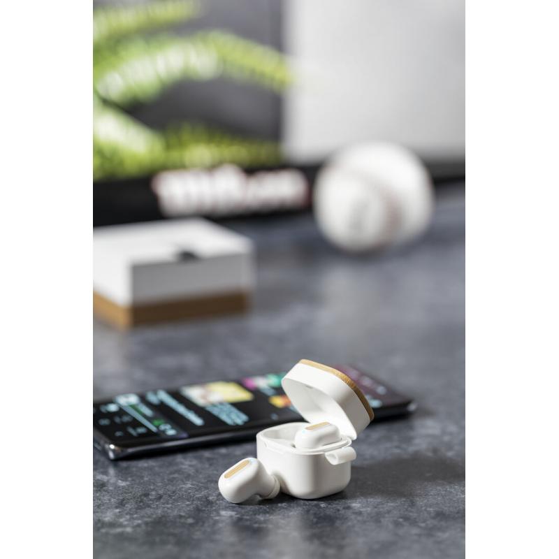Auriculares inalámbricos Limited Edition. Un rompedor diseño que conjuga diseño, funcionalidad, y sostenibilidad. En elegante acabado de color blanco en combinación con detalles en bambú natural y presentados en estuche cargador blanco con distinguida tapa de bambú. De diseño ergonómico, incluyen botón de control táctil integrado en el auricular, con base de carga a juego y luz LED indicadora de carga. Con conexión Bluetooth 5.0. Función manos libres y recargables con cable USB C incluido. Manual de instrucciones en Español e Inglés incluido. De la perfecta combinación entre exclusividad y diseño, nace Limited Edition, una colección especial de ideas promocionales de edidición limitada. Un nuevo concepto, inspirado en la fusión de artículos premium con las últimas y más novedosas tendencias y que cuenta con una seleción limitada de unidades, convirtiendo así un regalo en una experiencia única e inolvidable. Exclusivo estuche de presentación Limited Edition, con diseño protegido por derechos de propiedad industrial. Incluida tarjeta con descripción de Limited Edition en cartón reciclado.