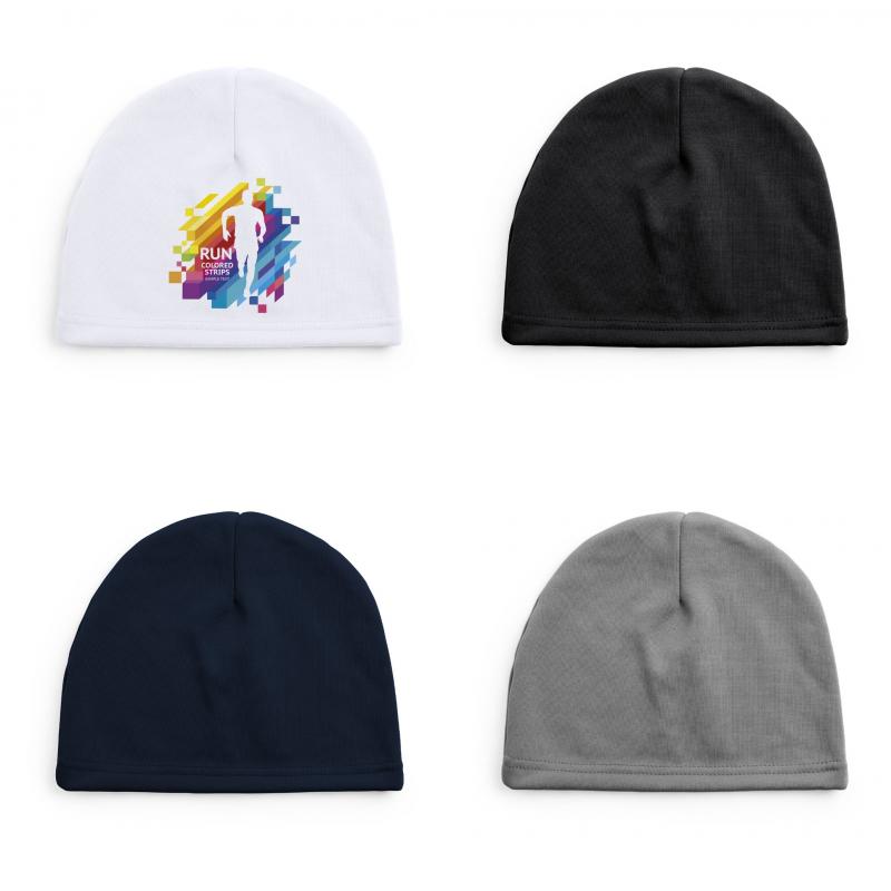 Gorro deportivo de alta calidad en combinación de materiales poliéster/spandex y coral fleece de 280g/m2. Color blanco ideal para sublimación y resto de gama de colores ideales para una fácil impresión. Cómodo ajuste.