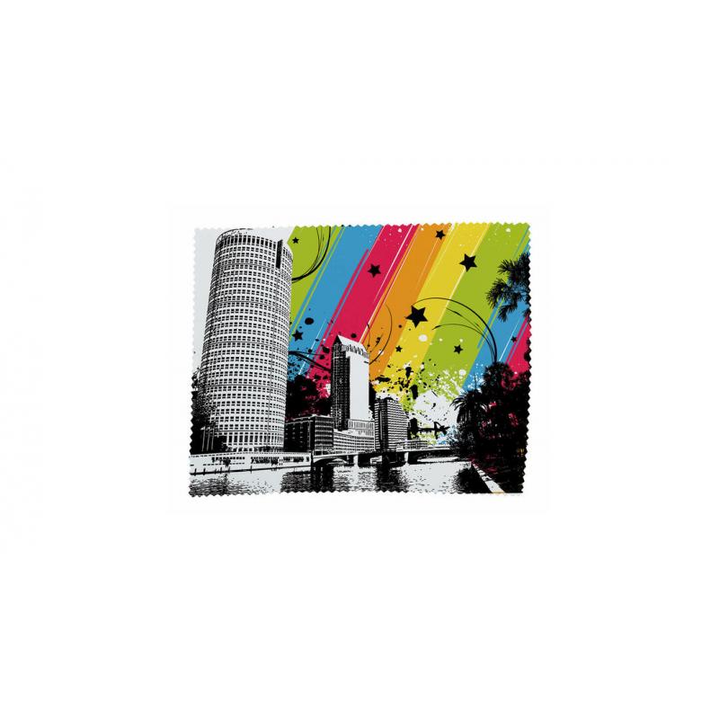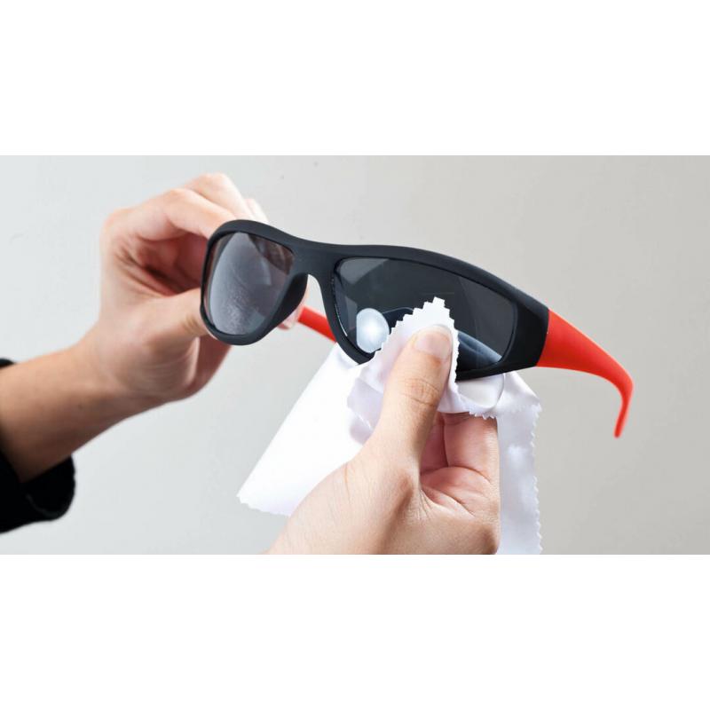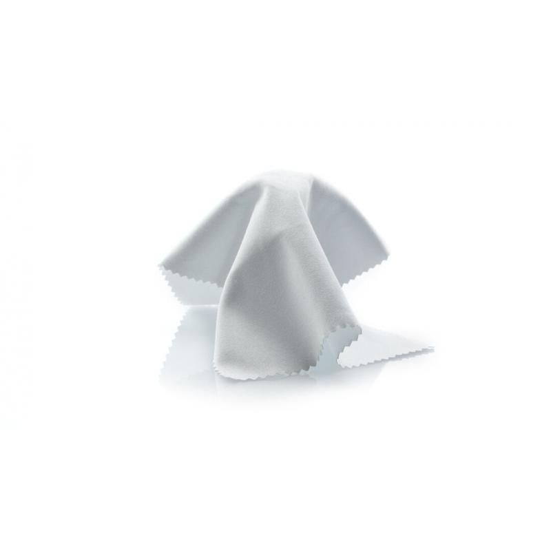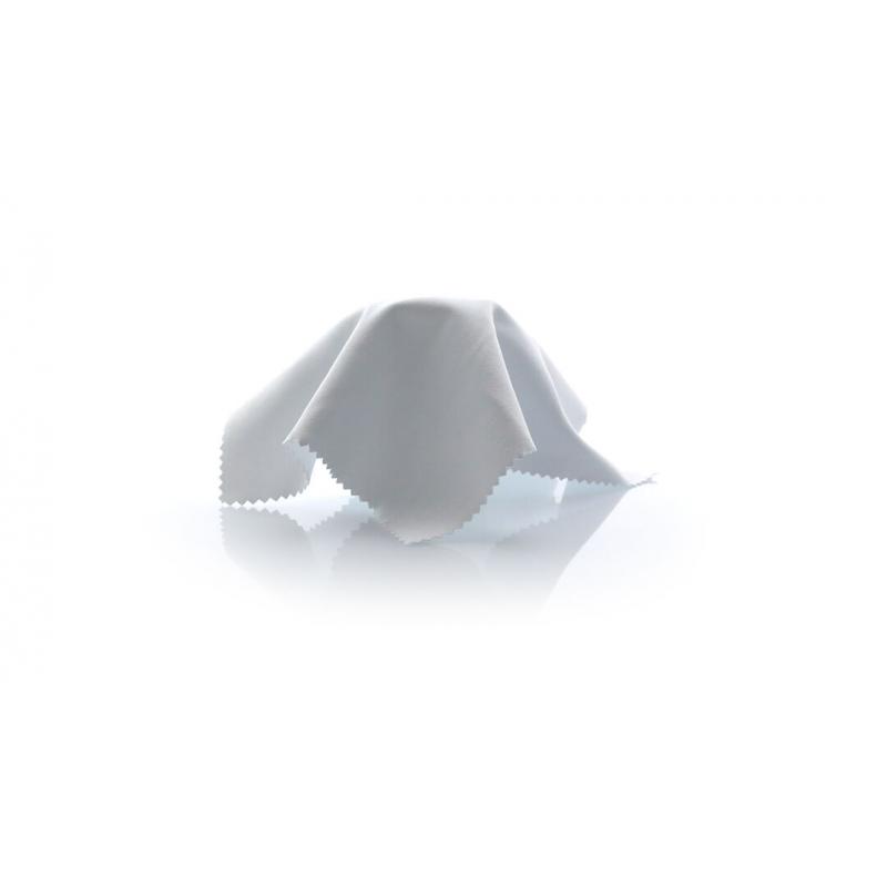 Paño limpiador en suave microfibra y diseñado para marcaje en sublimación. Laterales reforzados mediante corte de seguridad en zigzag.