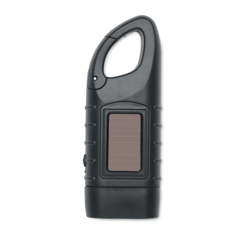 Linterna solar de 3 LED de luz blanca alimentada tanto por panel solar como por manivela dinamo en ABS reciclado.Recipiente :