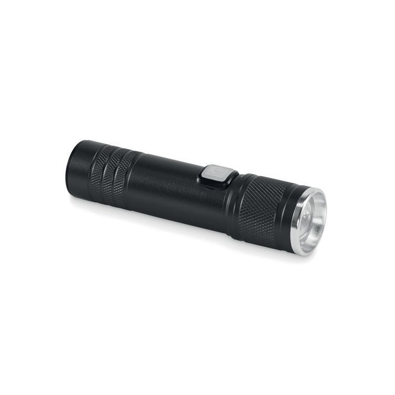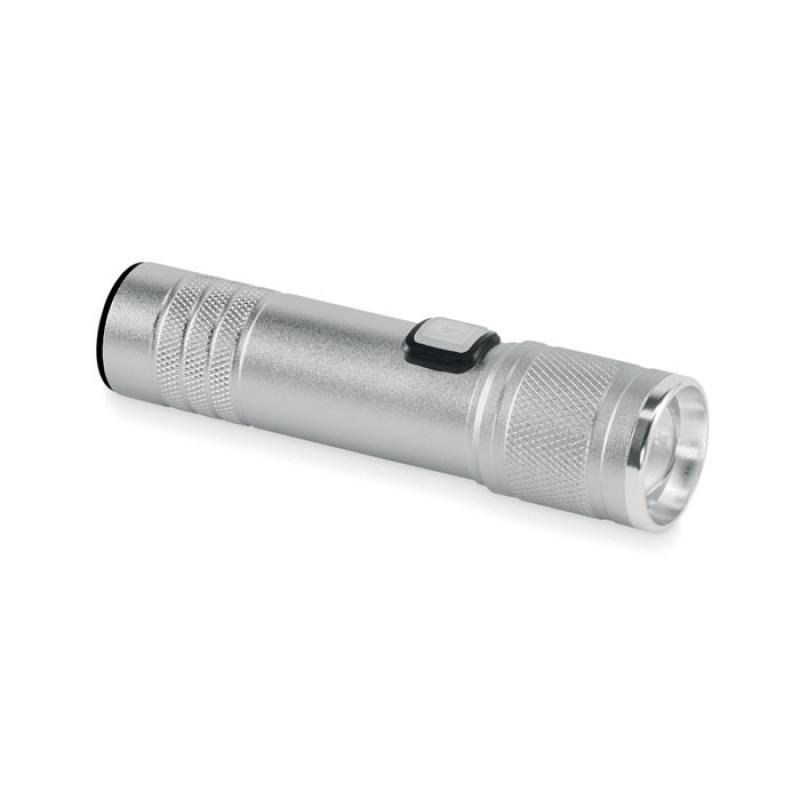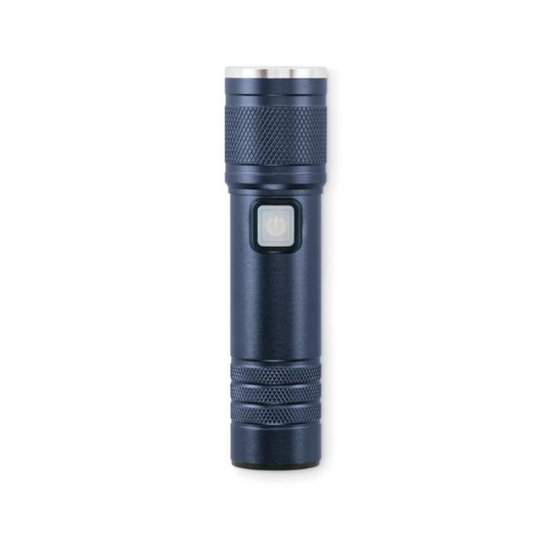 Linterna de luz COB recargable y extendible de aluminio reciclado. 100 lúmenes con 3 ajustes de luz y función de zoom. Batería recargable integrada de 800 mAh. Cable de carga incluido.Recipiente :
