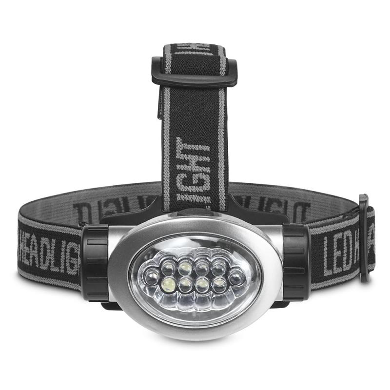 Linterna orientable con diadema elástica. Dispone de 8 leds blancos, 2 leds rojos y función flash. Incluye 3 pilas AAARecipiente :