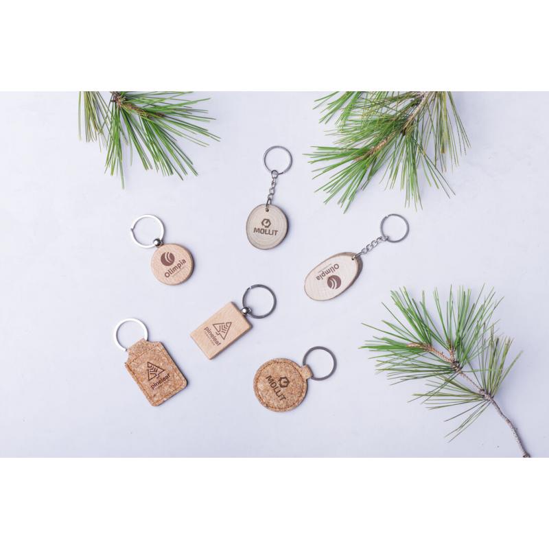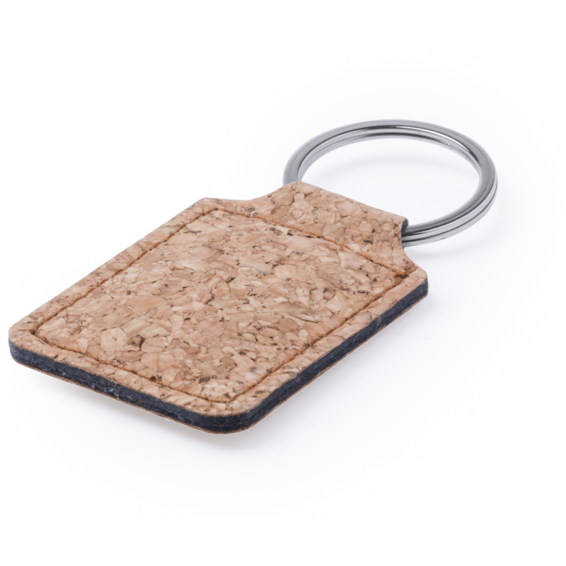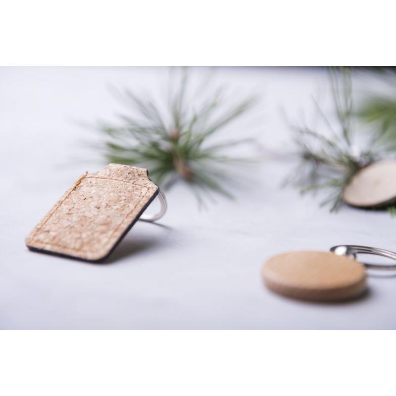Elegante llavero de línea nature fabricado en corcho natural. Con amplia superficie de marcaje y disponible en diseños rectangular y redondo.
