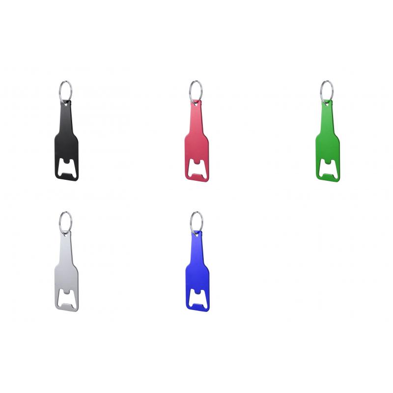 Original llavero abridor en aluminio con diseño de botellín en variada gama de vivos colores metalizados. Especialmente diseñado para marcaje en láser.