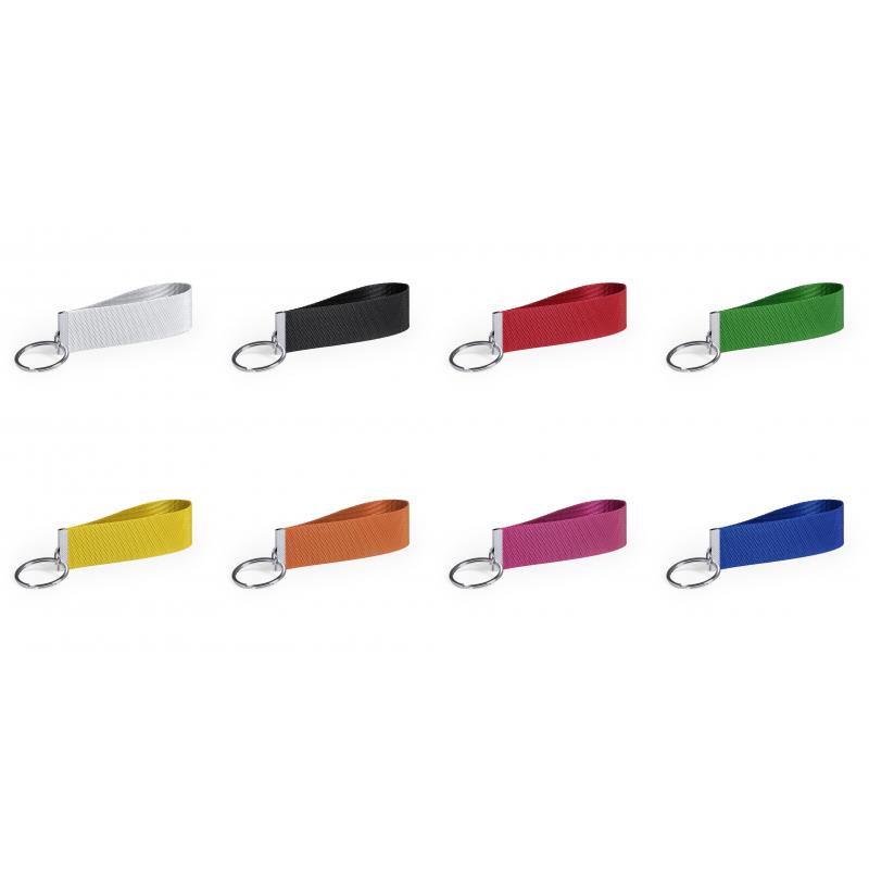 Llavero en resistente poliéster con detalles en metal. Disponible en variada gama de colores.