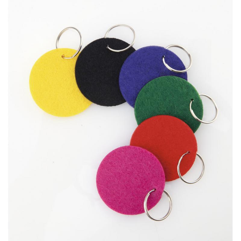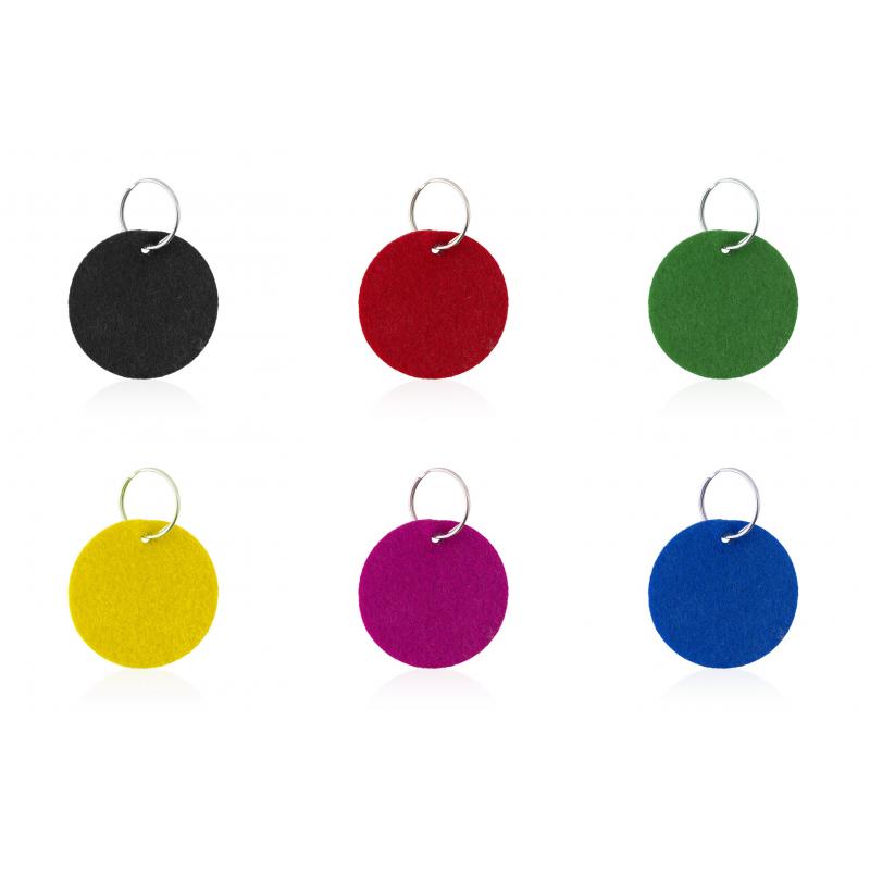 Llavero circular con cuerpo en suave fieltro de variados y vivos colores.