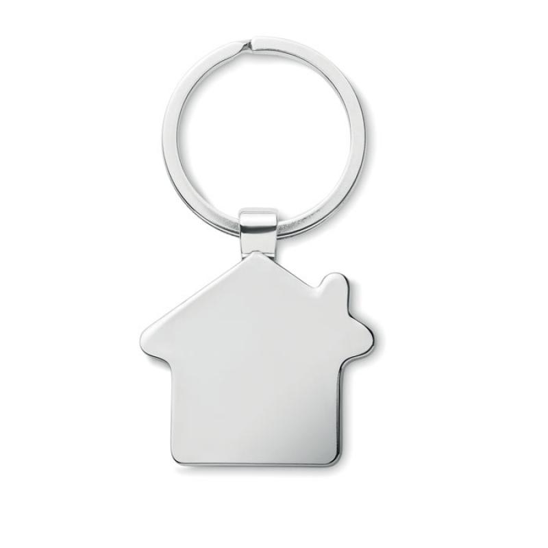 Llavero casa de aleación de zinc con un cara de bambú. El bambú es un producto natural, puede haber ligeras variaciones en el color y el tamaño por artículo, lo que puede afectar el resultado final de la impresión.