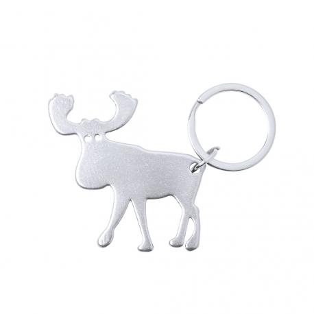 Original llavero abridor en aluminio. Con diseño navideño de reno en vivos colores brillantes.