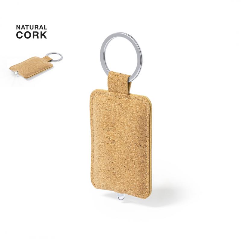Llavero linterna de línea nature fabricado en corcho natural. Con luz led que se activa presionando el cuerpo del llavero. Con amplia superficie de marcaje y alimentación a pilas (de botón incluidas).