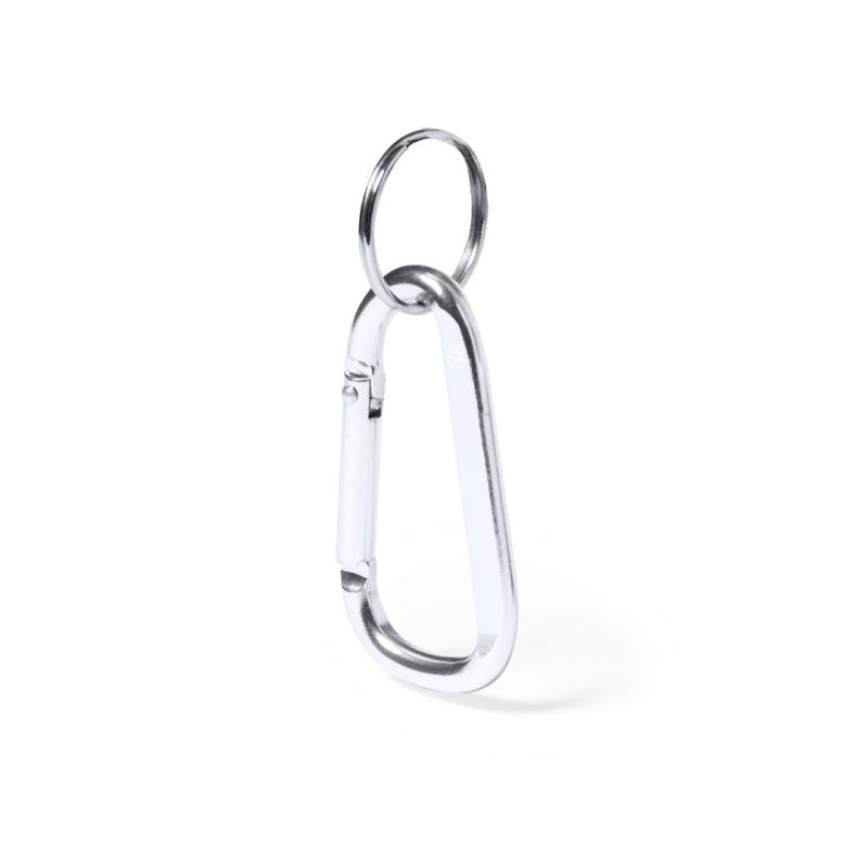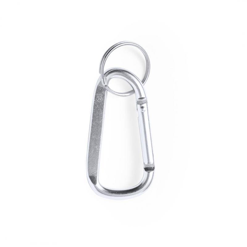 Mosquetón en aluminio reciclado de acabado plateado. Con anilla llavero metálica a juego y distintivo aluminio reciclado.El aluminio reciclado es un material con posibilidades de reciclaje casi infinitas, sin perder sus propiedades originales y consumiendo menos energía en este proceso.