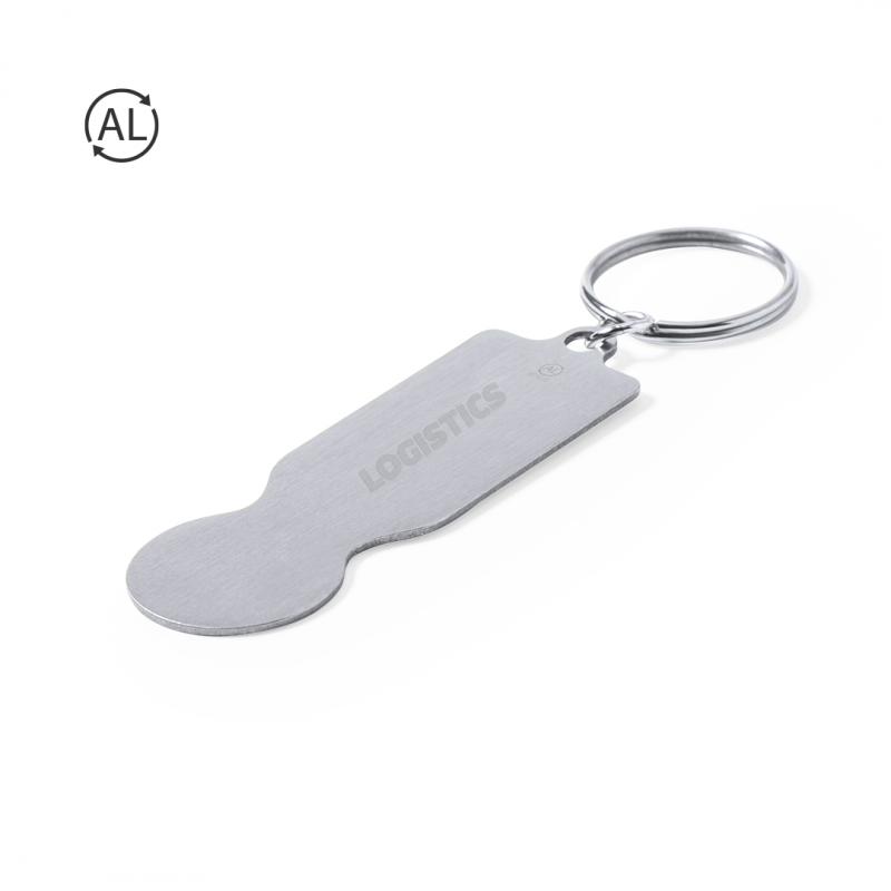 Llavero moneda en aluminio reciclado de acabado plateado. Cuerpo con amplia superficie de marcaje y distintivo aluminio reciclado. Con anilla llavero metálica a juego. El aluminio reciclado es un material con posibilidades de reciclaje casi infinitas, sin perder sus propiedades originales y consumiendo menos energía en este proceso.