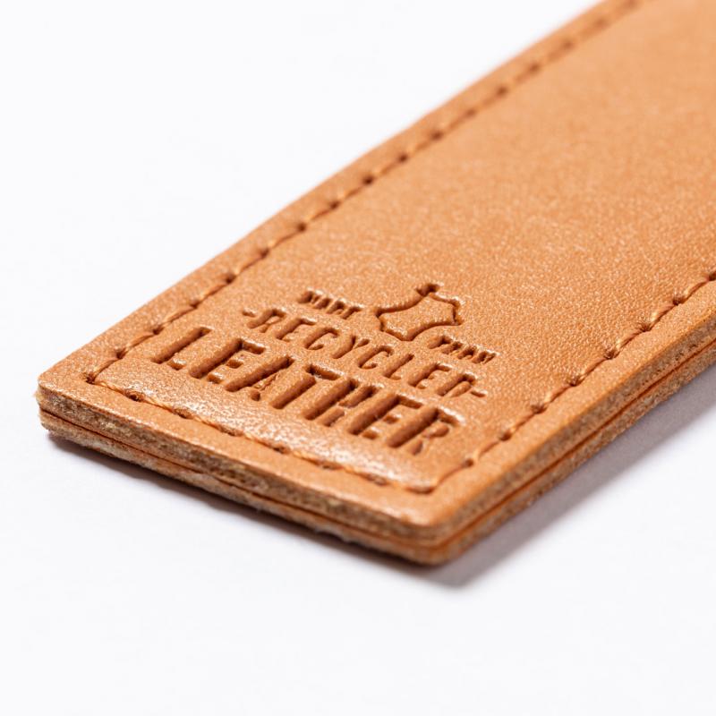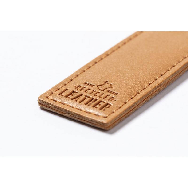 Llavero de línea nature fabricado en cuero reciclado. En tono marrón, con diseño rectangular y de acabado cosido. Grabado con distintivo cuero reciclado en una cara, con lado opuesto liso para impresión. Anilla metálica cromada y presentado en bolsa individual kraft.El cuero reciclado rescata las fibras desechadas en los procesos de fabricación del cuero, minimizando el desperdicio de material, contribuyendo a reducir el impacto ambiental y manteniendo a la vez sus propiedades originales.