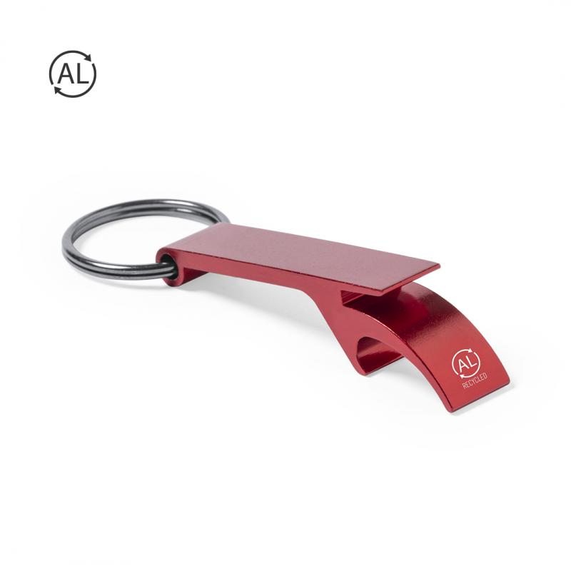 Llavero abridor en aluminio reciclado. Con accesorio para apertura de latas y especialmente diseñado para marcaje en láser. Disponible en variada gama de colores metalizados, con distintivo aluminio reciclado. El aluminio reciclado es un material con posibilidades de reciclaje casi infinitas, sin perder sus propiedades originales y consumiendo menos energía en este proceso.