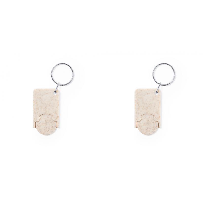 Llavero moneda de línea nature fabricado en caña de trigo. Con moneda extraíble y anilla metálica cromada.La caña de trigo fomenta la utilización de materias primas naturales, reduciendo así las emisiones contaminantes.
