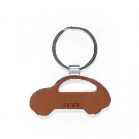 Llavero fabricado en cuero reciclado. En tono marrón, incluye distintivo cuero reciclado en una cara, con lado opuesto liso para impresión y anilla metálica cromada. Disponible en cuatro diseños:A: CasaB: CocheC: CírculoD: RectánguloPresentado en bolsa individual reciclada de cartón kraft.El cuero reciclado rescata las fibras desechadas en los procesos de fabricación del cuero, minimizando el desperdicio de material, contribuyendo a reducir el impacto ambiental y manteniendo a la vez sus propiedades originales.