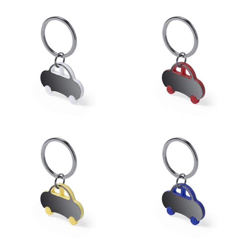 Llavero coche de diseño bicolor con cuerpo de acero inox en variada combinación de colores.