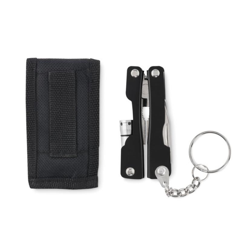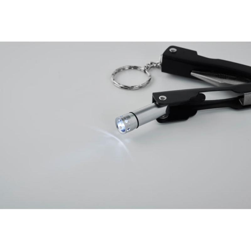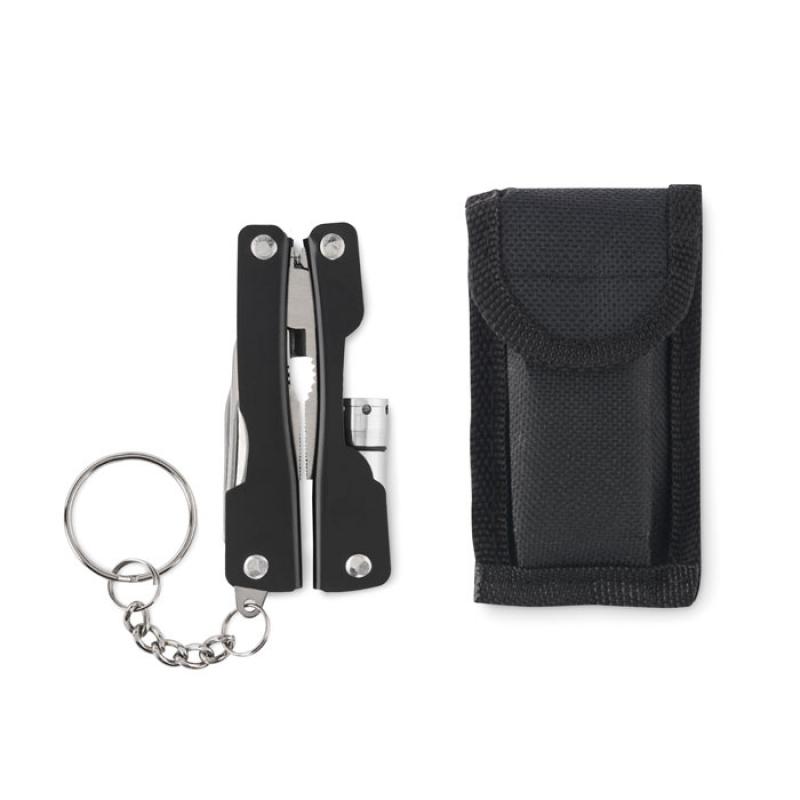 Navaja multiusos plegable con linterna en acero inoxidable. Incluye 10 funciones de herramienta y bolsa de poliéster 600D. Incluye 3 pilas de botón AG3.Recipiente :