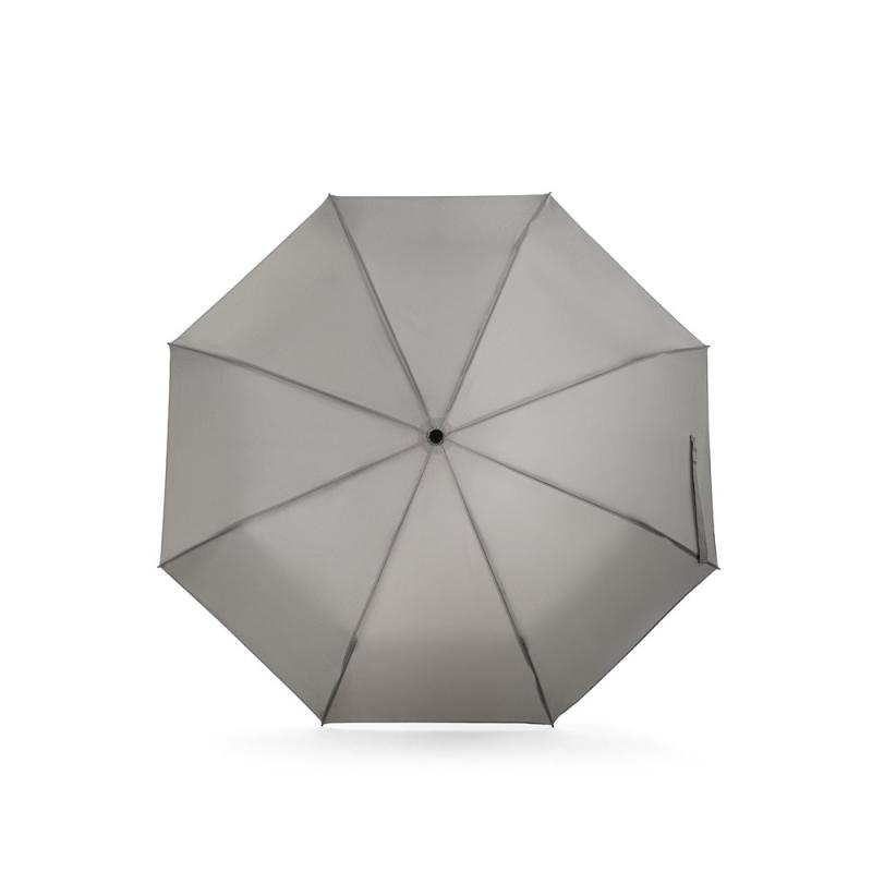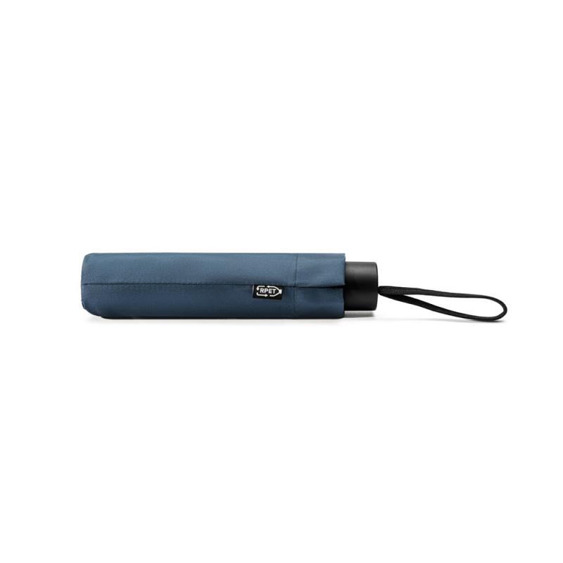 Paraguas de 53 cm de poliéster reciclado (100 % rPET) pongee 190T, con mango de ABS reciclado (100 % rABS) y varillas de fibra de vidrio. Paraguas plegable en 3 secciones, con apertura y cierre manual. Se entrega en una bolsaRecipiente :