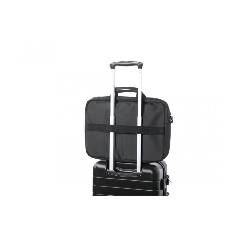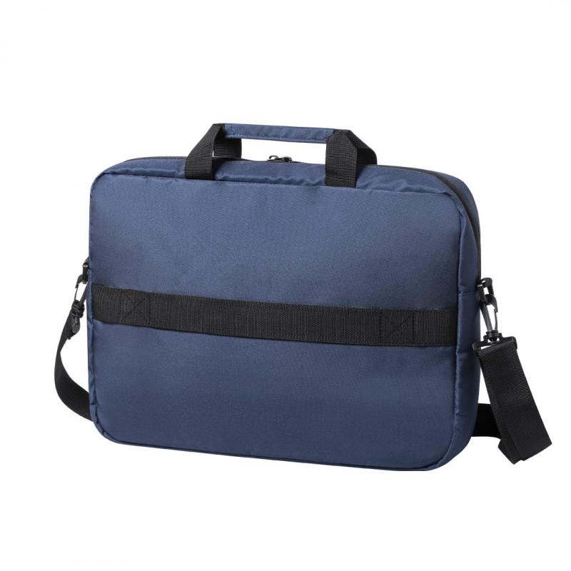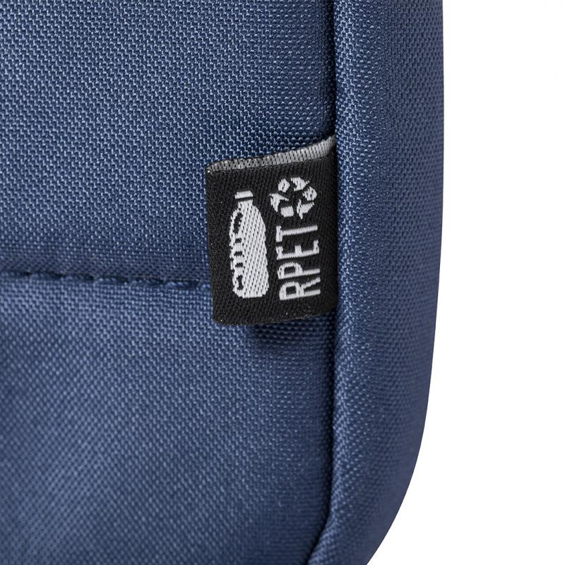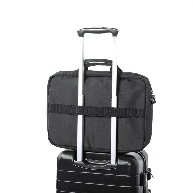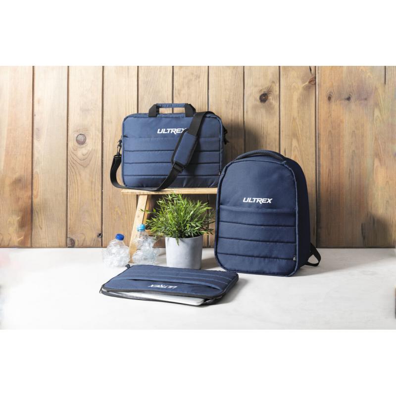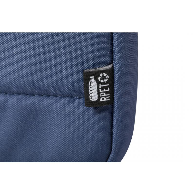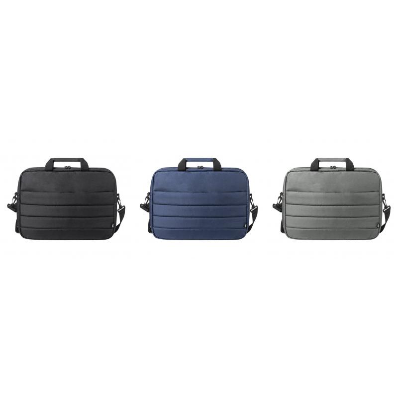 Maletín de línea nature con diseño urbano y acolchado total. Fabricado en resistente RPET 300D elaborado a partir de plástico reciclado, para así fomentar la reutilización de residuos plásticos y contribuir a la sostenibilidad del planeta. Accesorio para ajuste en trolley, con compartimento interior acolchado para ordenador portátil de hasta 15 pulgadas. Bolsillo principal con cierre de cremallera y tirador metálico. Cómodas asas de transporte reforzadas y cinta bandolera ajustable, con refuerzo acolchado para hombro y cierres giratorios de mosquetón. Distintivo RPET en etiqueta.