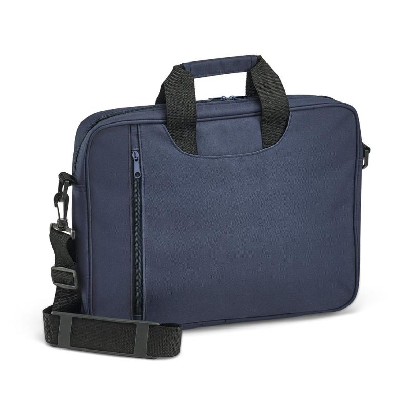 Maletín para ordenador de hasta 14” fabricado en poliéster 600D, con interior forrado y acolchado. Dispone de un asa bandolera ajustable y reforzada, 1 bolsillo principal y 2 bolsillos adicionales.370 x 290 x 60 mm