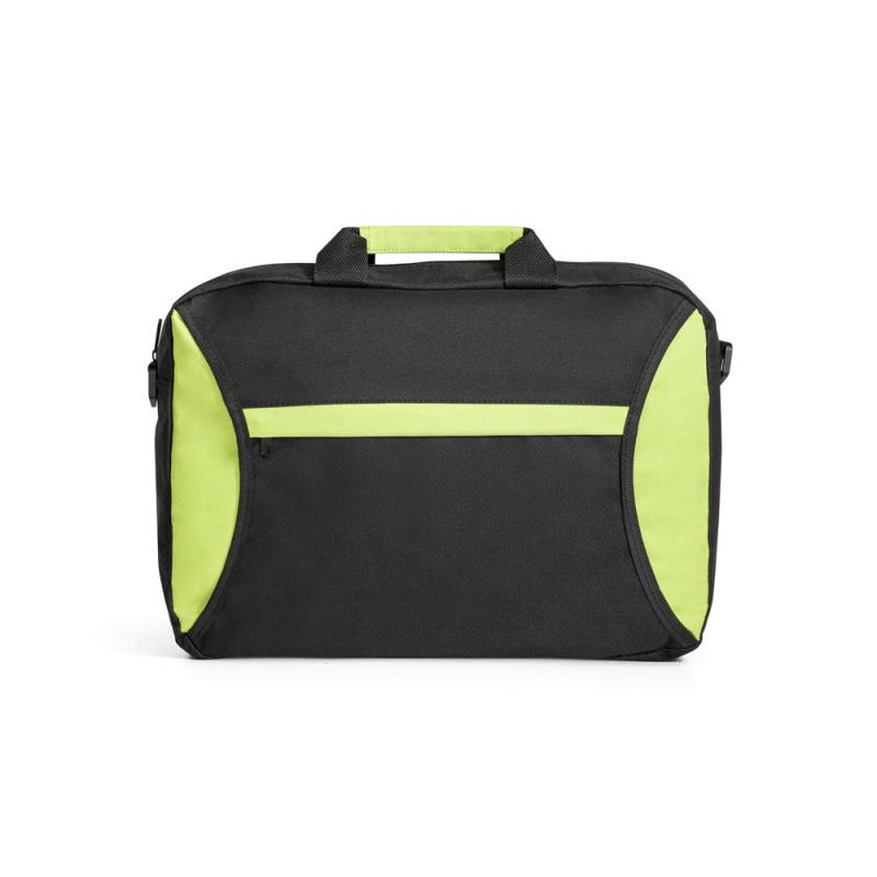 Maletín multiusos fabricado en poliéster 600D. Dispone de asas, una correa ajustable y un compartimento exterior abierto (forrado) con bolsillo frontal con cremallera