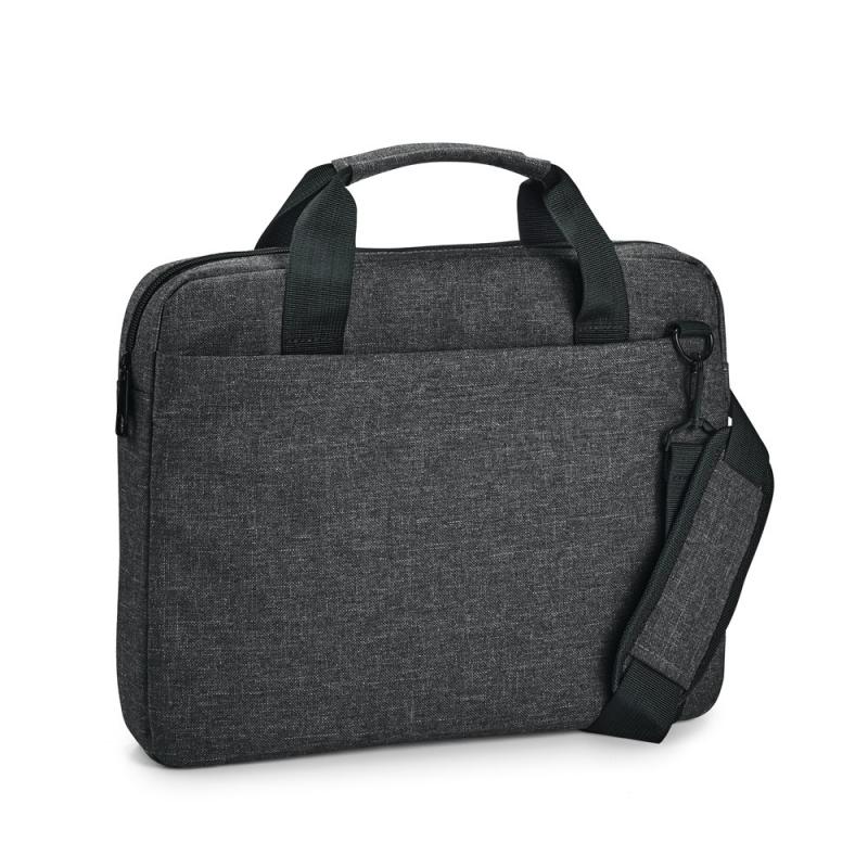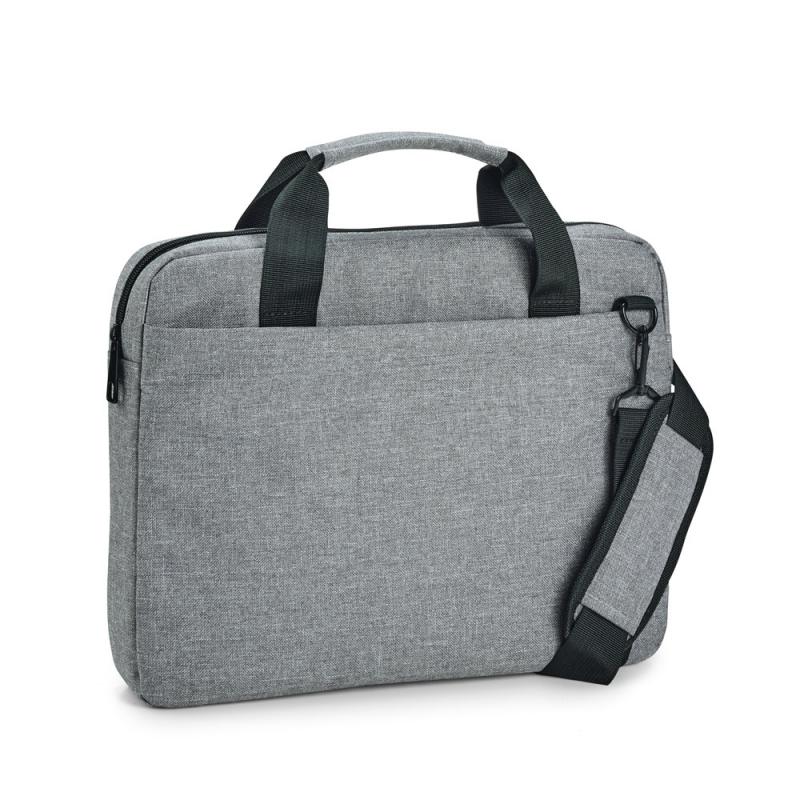 Maletín para ordenador fabricado en poliéster 600D de alta densidad. Dispone de un compartimento forrado y acolchado, con separación para ordenador de hasta 14''. Bolsillo frontal. Asa ajustable con refuerzo acolchado. Cinta para transporte en trolleyRecipiente :