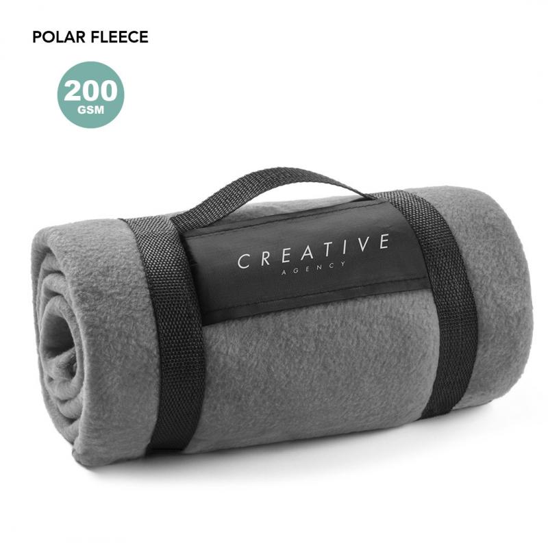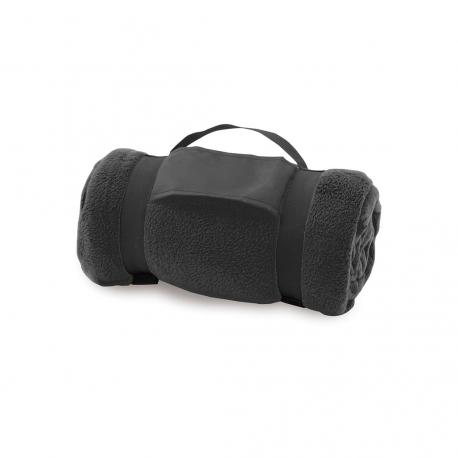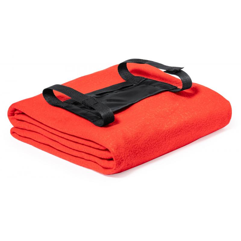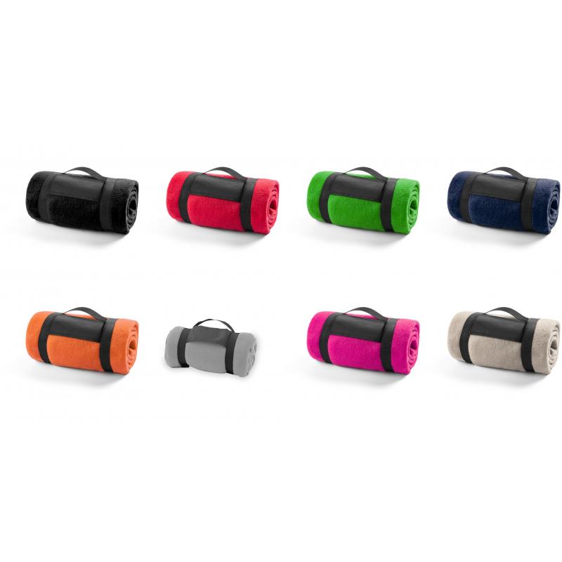 Manta de 130x160cm en variada gama de vivos colores. En material polar fleece anti-pilling de 200g/m2 y con asa de transporte de cierre de velcro en suave poliéster.