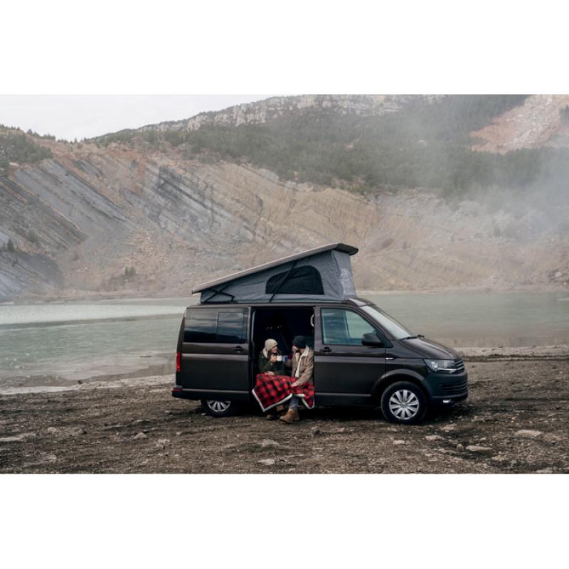 Manta polar forrada de sherpa en 1RPET polar (180 gr/m²) y sherpa de poliéster ( 230 gr/m² ). Presentada en un asa de transporte de nylon RPET.Recipiente :