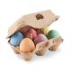 Juego de 6 tizas en forma de huevo presentado en una caja huevera de cartón.