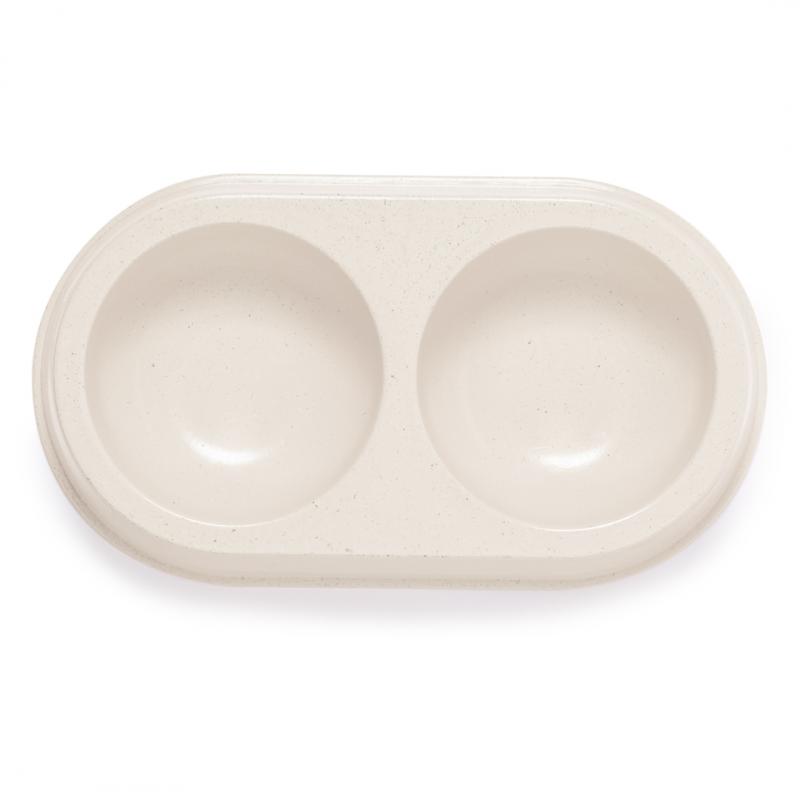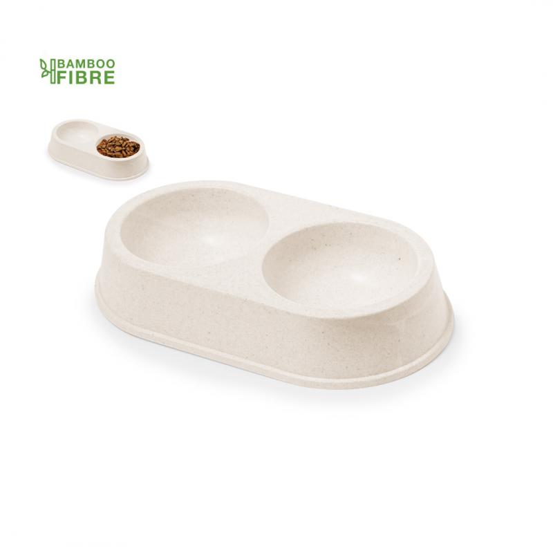 Bowl para mascotas de doble compartimento fabricado en fibra de bambú. Ideal para la alimentación de mascotas, gracias a sus dos divisiones para sólidos y líquidos. Presentado en una bolsa individual reciclada. Materiales como el bambú fomentan la utilización de materias primas naturales, reduciendo las emisiones contaminantes. Proviene de una planta de gran resistencia y versatilidad, con crecimiento y regeneración rápidos, siendo una excelente alternativa al uso de madera tradicional.