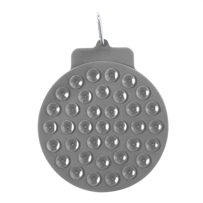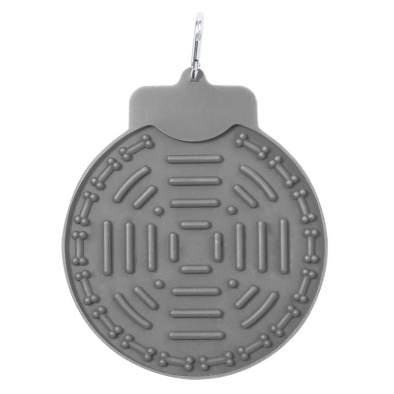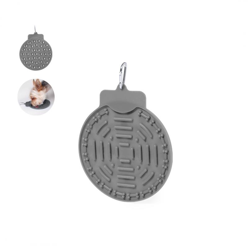 Almohadilla de mascotas para lamer fabricada en suave silicona. Con potentes ventosas para fijarla en superficies planas y que las mascotas puedan lamer su rugosa superficie. Mosquetón de transporte incorporado de fácil enganche. Presentado en una bolsa individual reciclada.