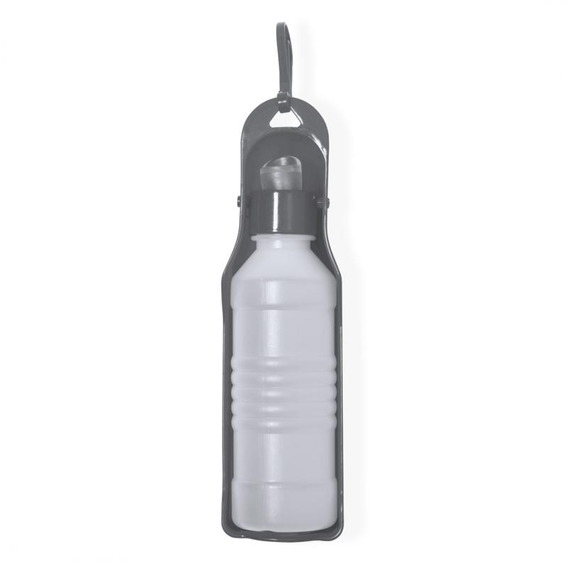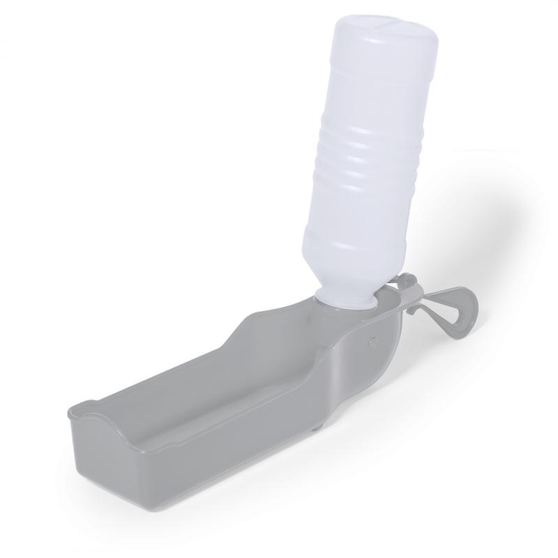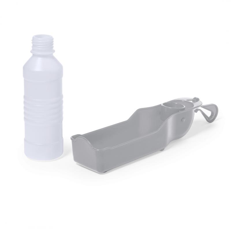 Práctico bidón y bebedero para mascotas de 250 ml de capacidad, fabricado en resistente PP. Fácil de usar, solamente hay que poner el bidón en posición vertical y presionarlo hasta que el bebedero se llene con la cantidad de líquido deseada. Con gancho de ajuste y presentado individualmente en caja de diseño kraft.