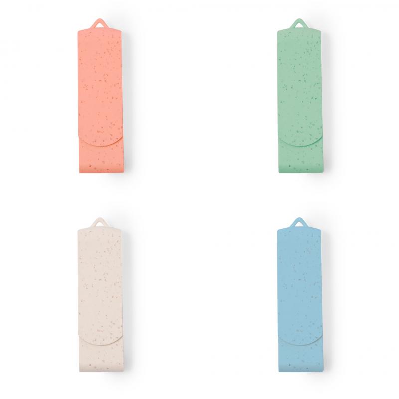Memoria USB de 16GB de capacidad. Fabricada en caña de trigo, con clip giratorio a juego y disponible en variada gama de colores. Presentada en estuche individual de diseño eco, fabricado en caña de trigo de acabado natural y con interior troquelado.La caña de trigo fomenta la utilización de materias primas naturales, reduciendo así las emisiones contaminantes.
