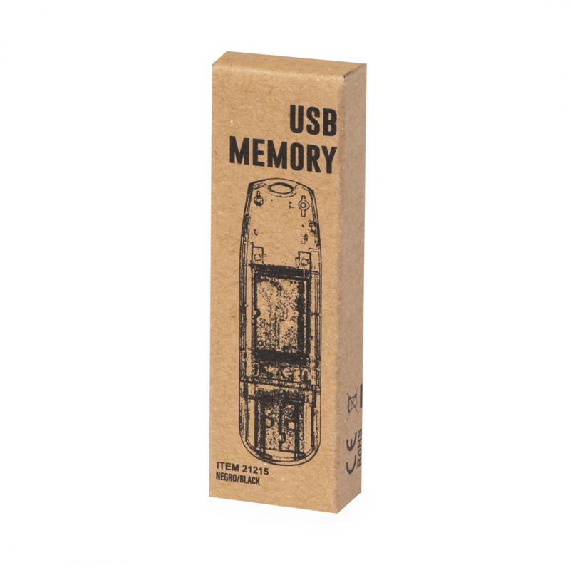 Memoria USB de 16GB de capacidad, fabricada en resistente ABS de acabado translúcido. Disponible en diferentes y atractivos colores, y presentada en caja individual de cartón kraft.