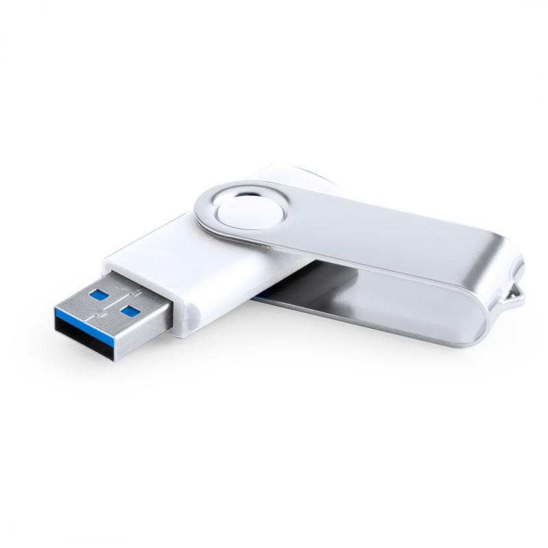 Memoria USB 3.0 de 16GB de capacidad. Con clip metálico y cuerpo de suave acabado en color blanco. Presentada en estuche individual.