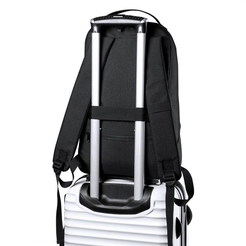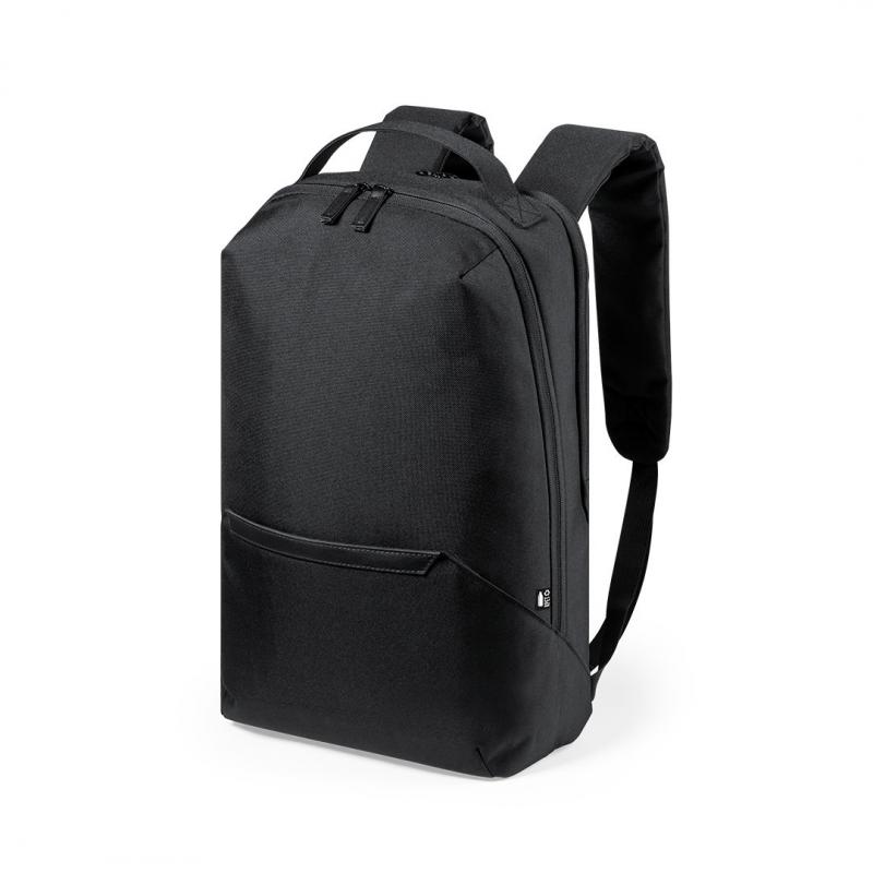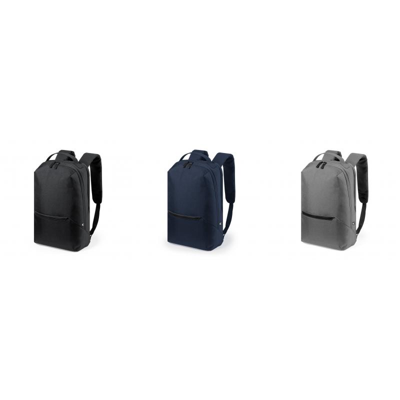 Mochila fabricada en resistente poliéster 600D RPET, elaborado a partir de plástico reciclado, para así fomentar la reutilización de residuos plásticos y ayudar a la sostenibilidad del planeta. Compartimento principal con cierre de cremallera de doble tirador y bolsillo en frontal. Interior con bolsillos acolchados para tablet de hasta 10 pulgadas y ordenador portátil de hasta 15 pulgadas. Accesorio de ajuste en trolley, con bolsillo antirrobo en parte trasera. Espalda y cintas de hombros acolchadas y ajustables, con distintivo RPET en etiqueta.