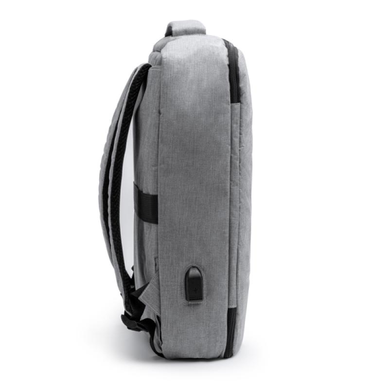 La mochila portadocumentos realizada en poliéster reciclado RPET de 300D con diseño vigoré es la elección perfecta para aquellos que buscan un equilibrio entre estilo, funcionalidad y sostenibilidad. Fabricada con materiales reciclados, esta mochila es una opción amigable con el medio ambiente.El bolsillo principal de la mochila está acolchado, proporcionando una protección segura y cómoda para tu portátil de 13" o tablet. Además, cuenta con un práctico puerto USB para conectar tu power bank (no incluido), permitiéndote cargar tus dispositivos electrónicos sobre la marcha.Las asas y la espalda de la mochila están acolchadas, brindando una comodidad óptima durante todo el día, incluso cuando llevas cargas pesadas. La cinta para trolley te ofrece la opción de fijar la mochila a tu maleta con ruedas, facilitando tus desplazamientos en aeropuertos y estaciones.Con su diseño vigoré, esta mochila combina estilo y versatilidad. Ya sea para ir al trabajo, a reuniones o para viajar, esta mochila portadocumentos te ofrece el espacio y la funcionalidad necesarios para llevar contigo todo lo que necesitas.Elige la mochila portadocumentos realizada en poliéster reciclado RPET de 300D con diseño vigoré y lleva tus pertenencias con estilo mientras contribuyes a la protección del medio ambiente.